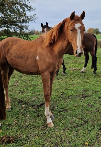 Certainly! Here is an appealing sales listing translation: --- 🌟 Promising Youngster with Excellent Pedigree 🌟 Secret Escape x Stedinger Gelding | 1.5 years | Estimated final height: approx. 16.1 hh This young gelding already impresses with his balanced temperament, good development, and three very attractive basic gaits. With his noble pedigree, he combines rideability, willingness to perform, and a modern type – ideal prerequisites for a successful future in dressage. 🔹 Pedigree: Secret Escape – Stedinger 🔹 Age: 1.5 years 🔹 Gender: Gelding 🔹 Estimated final height: approx. 16.1 hh 🔹 Highlights: Good basic gaits, correctly built, friendly in handling A great young partner for ambitious riders seeking a quality horse with potential. Unfortunately, he has started to crib this season, but it does not cause any problems. He is being sold directly by the breeder and could stay with us for further upbringing if desired. 📍 Location: 29336
