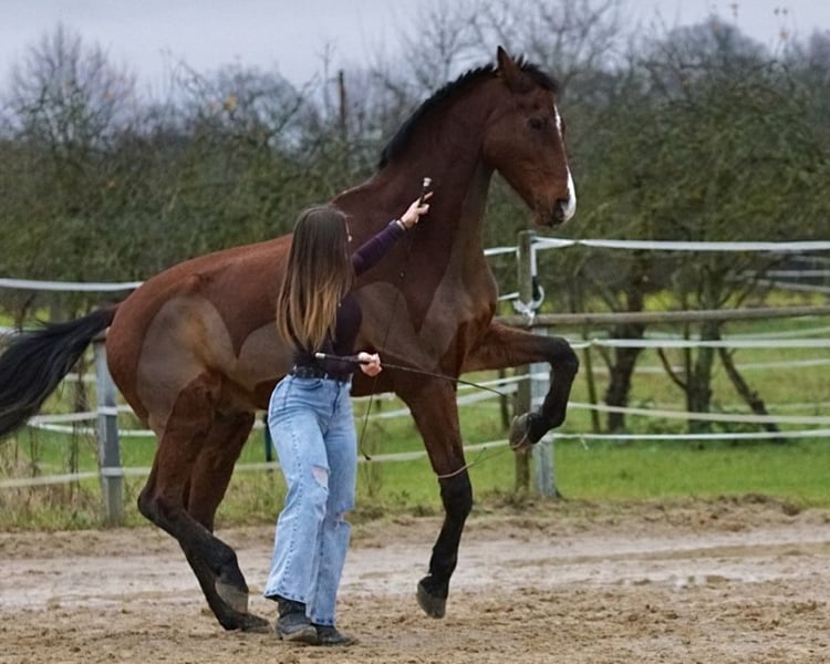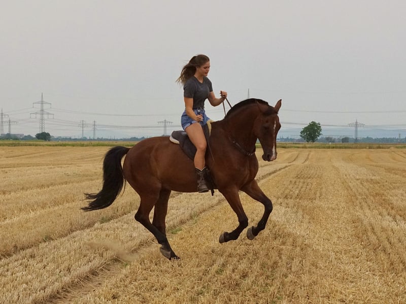 Ich suche auf diesem Weg eine liebevolle und zuverlässige Unterstützung für meinen 23-jährigen 175cm Hannoveranerwallach Castello, den ich nun schon seit über 9 Jahren an meiner Seite habe. Die Entscheidung fällt mir nicht leicht, da er mir unglaublich viel bedeutet – deshalb wünsche ich mir jemanden, der wirklich zu uns passt und mit genauso viel Herz, Feingefühl und Verantwortung an ihn herangeht. Über Castello: Castello ist ein absoluter Schatz. Er liebt Abwechslung und freut sich über alles, was gemeinsam Spaß macht: Spaziergänge, Joggen am Fahrrad, Bodenarbeit, Freiarbeit, Stangenarbeit, Freilaufenlassen, Tricktraining, Longenarbeit & Doppellonge. Er macht wirklich alles mit und freut sich über jede Aufmerksamkeit! Wenn wirklich alles stimmt ist auch Reiten nicht ausgeschlossen. Ich selbst reite ihn nur ca 1-2 mal die Woche daher ist mir wirklich wichtig, dass das Reiten auch bei dir nicht im Vordergrund steht. Er ist auch alleine ein absolut unerschrockenes Verlasspferd im Gelände. Er ist top erzogen und gutmütig, trotzdem allerdings kein reines Anfägerpferd, da er auch mal seine Grenzen testet. Dabei wird er aber nie bösartig, gefährlich und auch schreckhaft ist er überhaupt nicht. Aber er ist eben klug genug, um zu prüfen ob seine Person auch fähig ist, ihn zu führen. Im Gelände kann er auf der Galoppstecke Richtung Heimat auch mal stärker werden. Was mir wichtig ist: Ich suche keine klassische Reitbeteiligung, sondern jemanden, dem es wie mir um Castellos Wohl und Freude an der gemeinsamen Zeit geht. Der Fokus liegt nicht auf Reiten oder Leistung, sondern auf einer achtsamen, abwechslungsreichen Zeit miteinander. Sehr gerne auch jemand, der gar nicht reiten möchte! Alter oder Reiterfahrung spielen keine Rolle, solange du zuverlässig, feinfühlig und verantwortungsbewusst bist. An „deinen“ Tagen solltest du abäppeln, Heu auffüllen, Futter einweichen und je nach Tag manchmal misten. In der Regel beläuft sich das auf circa 30 Minuten Stallarbeit. Über uns & Rahmenbedingungen: Er wohnt in einem kleinem Selbstversorgerstall zwischen Ketsch, Schwetzingen und Brühl in einer große Paddockbox mit seinem besten Kumpel. Es gibt einen kleinen Reitplatz und einen überdachten Roundpen. Ich suche Hilfe für 1–2x pro Woche. Da ich im Schichtdienst arbeite freue ich mich auch sehr, wenn das flexibel aber planbar möglich ist. Wenn du dich angesprochen fühlst und du Lust hast, einem einzigartig tollen Pferd Zeit, Aufmerksamkeit und Freude zu schenken – melde dich gerne und erzähl ein bisschen von dir. Ich freue mich darauf, jemanden zu finden, der Castello genauso schätzt, wie ich es tue.
