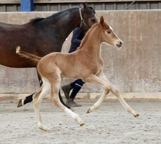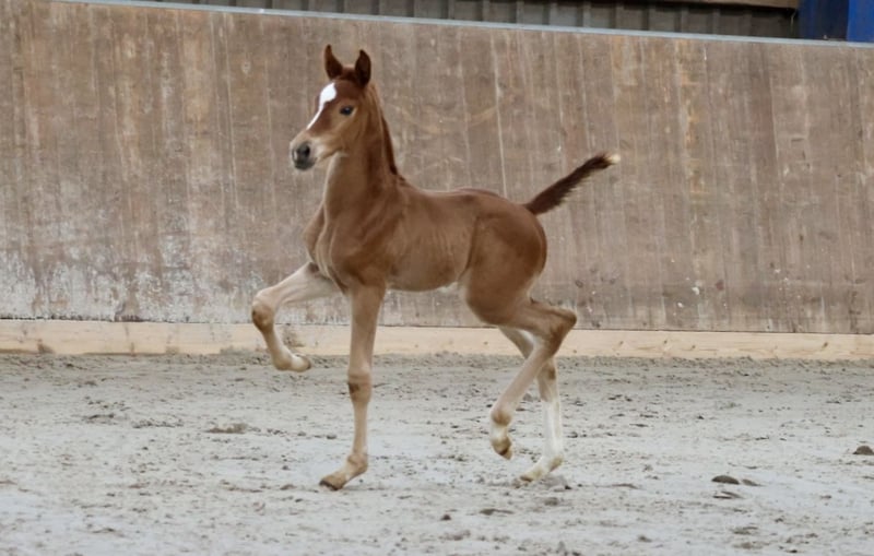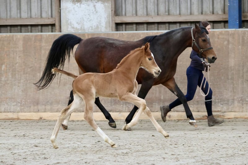 Vidar son straight out of a picture book. An absolute eye-catcher. Correct with well-developed joints, "knee action", active hind leg Type and the right "shot" of Arabian blood through the dam line. Sire Vidar already successful in dressage up to S*** The dam is a premium mare Trakehner, Hanover, Arabian Association with good SLP Her dam Camar Qalifa ox is an elite mare, GP Trakehner, has a licensed son and 3 award-winning daughters! A young stallion who will be equally interesting for licensing and sport.