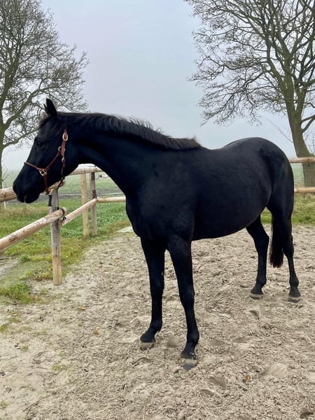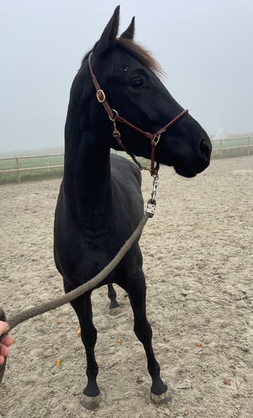 Dieser sehr schöne 3 jährige Rappe ist aktuell noch roh und wird wegen Bestandsverkleinerung und auf Grund der aktuellen Marktlage günstig abgegeben.. Er stammt ab von Quality Control aus einer Earl Mutter und ist ca. 1.63m groß. Er ist kein Lampenaustreter , aber verfügt über solide schöne Grundgangarten und steht korrekt auf stabilem Fundament. Er ist bei uns seit Fohlenalter an, wurde stets mit Mineral versorgt, regelmäßig entwurmt, dem Schmied vorgestellt und war noch nie krank. Er ist ein schöner kompakter Wallach , der im Amateur und Freizeitbereich sicher als Allrounder in allen Sparten zu Hause für weitere Informationen gerne anrufen 017662637296.