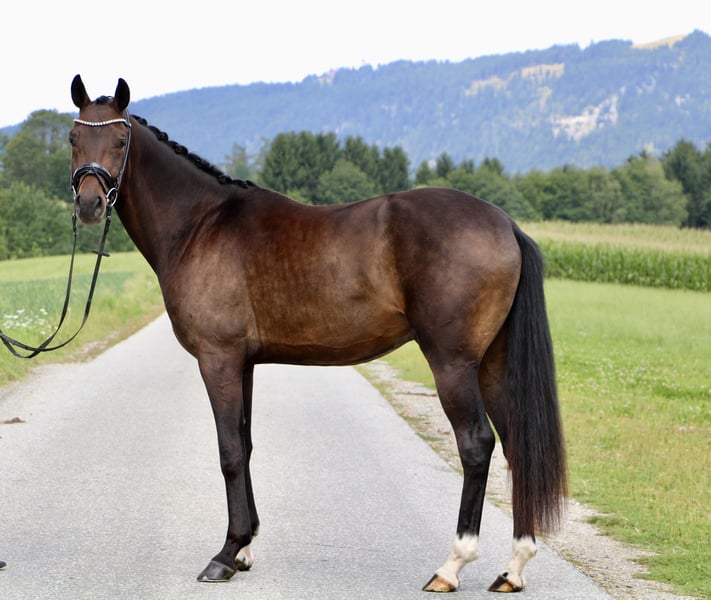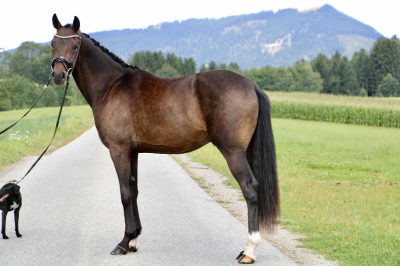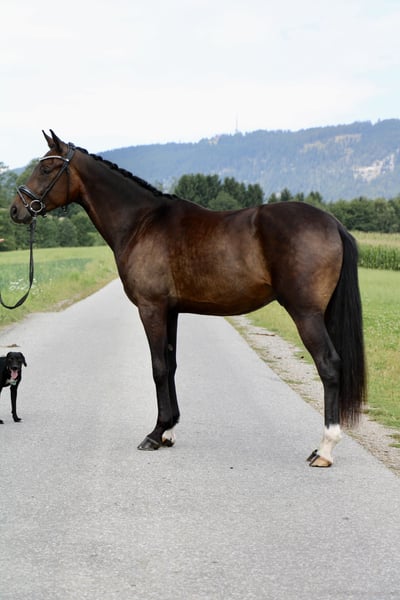 ✨ Eleganz trifft auf Charakter – Nachwuchsstar von For Romance ✨ Zum Verkauf steht ein außergewöhnlich typvoller, 2022 geborener Wallach (Stockmaß ca. 1,69 m), der durch seine beeindruckende Erscheinung, seine hervorragenden Grundgangarten und seinen Charakter aus purem Gold begeistert. Dieser junge Wallach ist ein Sohn des Ausnahmevererbers For Romance I, der mit seinem modernen, edlen Exterieur, seiner Rittigkeit und seiner herausragenden Vererbung international für Aufsehen sorgt. For Romance bringt nicht nur zahlreiche erfolgreiche Nachkommen in der Dressur hervor, sondern überzeugt auch durch seine Veranlagung, Ausstrahlung und Leistungsbereitschaft – Eigenschaften, die sich in diesem Nachwuchspferd deutlich widerspiegeln. ✨ Highlights des Wallachs ✨ - 2022 geboren, Stockmaß ca. 1,69 m - Gerade schonend angeritten – dabei stets kopfklar, unkompliziert und lernwillig - Sehr menschenbezogen, unerschrocken und nervenstark - Schmiede- und verladefromm, absolut zuverlässig im Umgang - Keine Unarten – stets angenehm im täglichen Handling - Beeindruckender Freisprung, der sein vielseitiges Talent unterstreicht - Röntgenbilder liegen vor (ohne Befund) - Bisher immer gesund, nie krank gewesen Dank seiner Ausstrahlung, Bewegungsqualität und seines einwandfreien Charakters bringt er alles mit, was man sich für eine erfolgreiche Zukunft im Dressurviereck wünscht. Mit seinem hohen Talent, seiner Lernfreude und seiner klaren, positiven Einstellung zur Arbeit bietet er die besten Voraussetzungen für eine Karriere im Sport. Ein Traumpferd für ambitionierte Reiter, die einen verlässlichen, eleganten Partner mit großem Potenzial suchen.