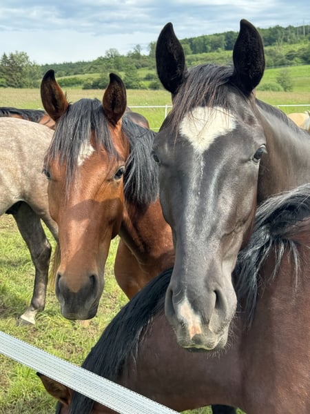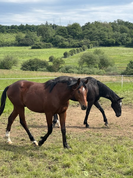 Hongre hanovrien de 3 ans issu de notre élevage avec une excellente lignée : BAILADORINHO CE (Bert) Père : BAILADOR (Benicio x Florencio I) Mère : jument primée hanovrienne IXXI CE (IL DIVO x DON FREDERICO x WELTMEYER), MEILLEURE JUMENT DEMI-SANG 2020 au concours Herwart von der Decken, également avec un très bon SLP Né : 12 mai 2022 Taille : 1,66 m Remarque : bon contrôle vétérinaire des radiographies y compris du cou et du dos. Bert a grandi dans un élevage professionnel avec un hébergement adapté, a été régulièrement vacciné, vermifugé et présenté au maréchal-ferrant. Il est très attaché aux humains et prêt pour une formation adaptée à son âge. En raison du fait qu'il est encore en élevage, il n'y a malheureusement pas de vidéo actuelle et significative qui reflète sa qualité.