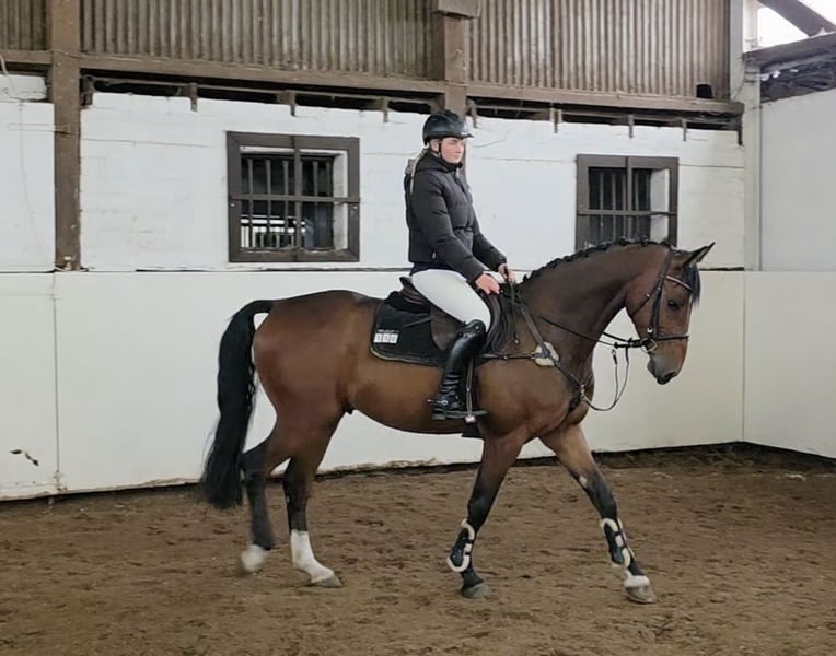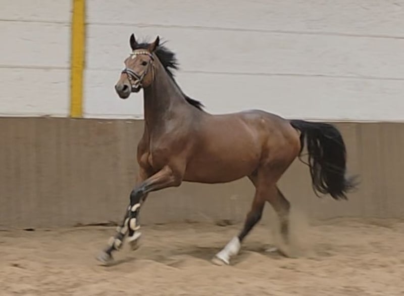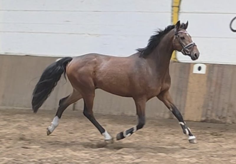Cedrik ist ein sehr hübscher und nervenstarker Wallach mit toller vielseitiger Veranlagung. Er ist sehr rittig, mit guten Bewegungen ausgestattet und abstammungsgemäß natürlich viel Potential am Sprung. Beim Freispringen kann er mit viel Mut und Vermögen überzeugen. Er springt in schöner Manier, vorsichtig und mit viel Übersicht. Auch unter dem Reiter kann er dies umsetzen. Er springt bereits einen Parcours unter dem Reiter und wir hatten ihn gerade zu einem ersten Trainingsturnier mit. Hier lief er gleich eine fehlerfreie Runde und war fast genauso cool wie Zuhause. Dabei ist er angenehm ehrgeizig und hat Spaß an der Sache. Verladen, der ganze Umgang etc waren auch top. Ein Pferd, das in der täglichen Arbeit einfach Freude bereitet und vielseitig einsetzbar ist. Er wird hier auch problemlos ins Gelände geritten. Sein Charakter und sein Format machen den charmanten Cedrik zu einem tollen Mädchen - / Damenreitpferd mit Potential für höhere Klassen. Sein Bruder ist zB schon 1.40 m platziert. Aber auch als Partner für anspruchsvollen Freizeitreiter, in der Dressur oder sogar in der VS kann man ihn sich vorstellen. Er verträgt sich bestens auch mit anderen Pferden und ist täglich mit diesen auf dem Paddock. Einfach ein Pferd , wie man es sich nur wünschen kann. 4j Hann Wallach, 1.68m Cabo Verde (Christian ) x Calato x Corrado Gute Röntgenbilder und Klinische Aku liegen vor Video: https://youtu.be/OdXWvmmOg88?si=Bggi4g3Jm1sclyR9 https://youtu.be/48i5RBrefq4?si=vIT62hQOLHQOmXWK „Videos, Trainingsausschnitte und weitere Eindrücke zu unseren Verkaufspferden finden Sie auch auf Instagram: [maresi_lange]. Dort erhalten Sie zusätzliche Informationen und Einblicke in die Entwicklung der Pferde. Videos, training highlights and further impressions of our sales horses can also be found on Instagram: [maresi_lange]. There you will get additional insights and a closer look at the horses’ development.“ Weitere Pferde auf meiner Homepage MaresiLange.de oder auf Anfrage. Die Beschreibung des Pferdes beruht auf subjektiven Eindrücken und Erfahrungen unsererseits und ist keine Beschaffenheitsvereinbarung und Zusicherung von Eigenschaften. Probereiten erfolgt auf eigene Gefahr. Für das Vorstellen/ Probereiten des Pferdes erlauben wir uns eine Aufwandsentschädigung in Höhe von 30 Euro zu berechnen. Diese wird natürlich bei Kauf des Pferdes verrechnet.