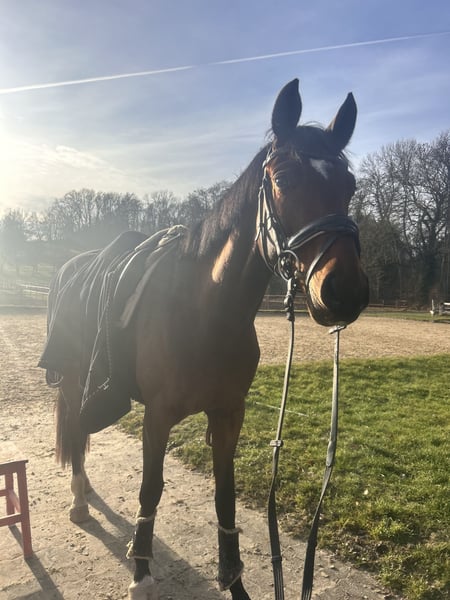 Schonend im Frühjahr angeritten und den Sommer auf der Weide verbracht hat diese 3jährige Stute von Fürst Zonik aus einer Mutter von Dancier. Sicher und sehr rittig in allen Grundgangarten zu Reiten präsentiert sich “Filli Fee” sportlich ambitioniert bereit für neue Aufgaben. Sie ist selbstgezogen, die Mutter Delta war Staatsprämienstute. Sehr behütet aufgewachsen kennt sie nun Freispringen, Laufband, Reiten in der Halle, auf dem Platz und im Gelände. Filli Fee ist recht selbstbewusst im Umgang und benötigt auch einen selbstbewussten Reiter, sie ist aber nie doof oder übertrieben stutig, sondern einfach eine kernige, selbstbewusste junge Dame, der man hin und wieder ihre Grenzen aufzeigen muss. Weitere Informationen telefonisch unter 0174/5630008 Nun ist er bereit für neue Aufgaben und sucht ein neues Zuhause. 0174/5630008
