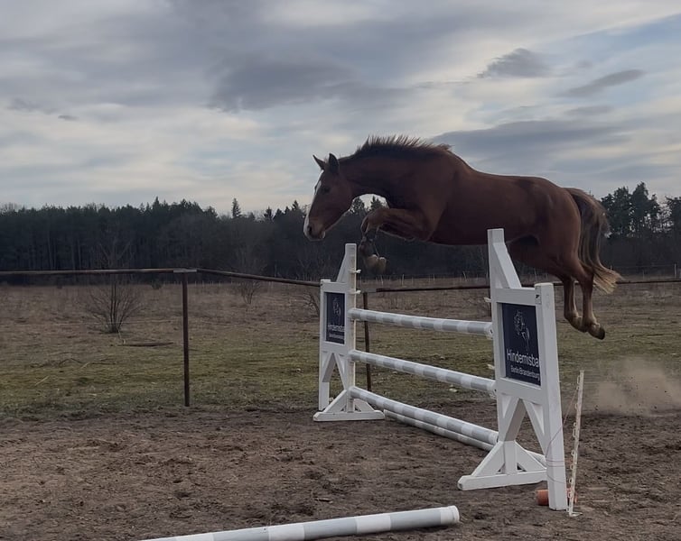 Dexter ist ein außergewöhnlicher 4-jähriger Hannoveraner Wallach (1,80 m), der durch Abstammung, Vermögen und Charakter sofort ins Auge fällt. Er stammt aus einem hoch erfolgreichen internationalen Sportstamm (Diego de Semilly (Diarado) x Stalypso). Sein Halbbruder ist bereits bis 1,50 m im Springsport erfolgreich, und auch Dexter selbst zeigt bereits jetzt viel Vermögen und Übersicht am Sprung. Aufgewachsen im Offenstall auf großzügigen Weiden konnte er sich körperlich und mental optimal entwickeln. Dadurch bringt er eine robuste, stressresistente Mentalität und ein sehr gutes Fundament mit. Wald, Straßen, Gelände und Auswärtstraining kennt er bereits und bleibt auch in neuen Situationen ruhig, aufmerksam und lösungsorientiert. Beim Anreiten wurde besonderer Wert auf Zeit, Vertrauen und eine korrekte körperliche Entwicklung gelegt. Dexter wurde bewusst schonend aufgebaut, ohne durch zu frühe oder zu intensive Belastung überfordert worden zu sein. Dadurch präsentiert er sich heute mit einem gesunden Fundament für eine langfristige sportliche Karriere. Unter dem Sattel ist Dexter in allen drei Grundgangarten geritten. Im Freispringen zeigt er Mut, Vermögen und ein hervorragendes Distanzgefühl. Er geht mit viel Motivation an die Aufgabe, bleibt konzentriert und zeigt eine natürliche Sprungbereitschaft mit stets nach vorne gerichteten Ohren. Auch im täglichen Umgang überzeugt er vollkommen: Schmied, Tierarzt und Anhänger sind für ihn kein Problem. Charakterlich ist er ein freundlicher, verschmuster und sehr menschenbezogener Partner, der schnell Vertrauen fasst und stets mitarbeitet. Durch seine Kombination aus Gelassenheit, Rittigkeit und sportlicher Motivation ist Dexter sowohl für ambitionierte Reiter als auch für jüngere oder weniger erfahrene Reiter interessant, die ein zuverlässiges und ehrliches Pferd mit viel Perspektive suchen. Dexter bringt bereits jetzt sehr solide Grundlagen mit und ist bereit, sein Potenzial im Springsport weiter zu entfalten. Videos sind selbstverständlich vorhanden. Röntgenbilder können bei ernsthaftem Interesse erstellt werden. Mit weiterer Ausbildung wird der Preis entsprechend angepasst.
