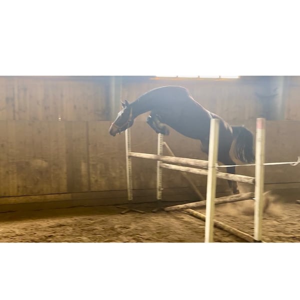 3 year old Hanoverian gelding by Comme Prévu x Stalypso, 166cm, sensitive horse with top jumping ability, lightly broken in, now back in the pasture. X-rays incl. knees and back without findings. The horse is located in the Czech Republic about 100km from Dresden. More info and videos via whats app +420773193505 Details about the horse Name: Clooney Color: Black-brown Year of birth: 2021 Breeding association: Hanoverian Gender: gelding Size: M: 163 - 168 cm (16.1 - 16.2hh) Sire: Comme Prévu Dam: Saphira S MV: Stalypso MMV: Carbid Suitability: Jumping, dressage, eventing, hunter, leisure, Training: broken in