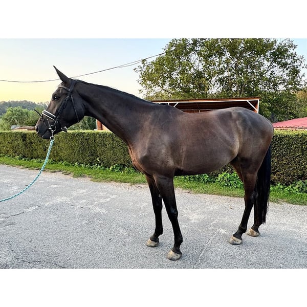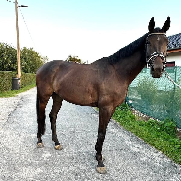 Castrone Hannoveriano di 3 anni da Comme Prévu x Stalypso, 166 cm, cavallo sensibile con ottime capacità di salto, leggermente rodato, ora di nuovo al pascolo. Le radiografie, comprese quelle delle ginocchia e della schiena, non hanno dato risultati. Il cavallo si trova nella Repubblica Ceca a circa 100 km da Dresda. Ulteriori informazioni e video tramite whats app +420773193505 Dettagli sul cavallo Nome: Clooney Colore: nero-marrone Anno di nascita: 2021 Associazione d'allevamento: Hannover Sesso: castrone Taglia: M: 163 - 168 cm (16,1 - 16,2hh) Sire: Comme Prévu Femmina: Saphira S MV: Stalypso MMV: Carbid Idoneità: Salto, dressage, eventi, caccia, tempo libero, Addestramento: rodaggio