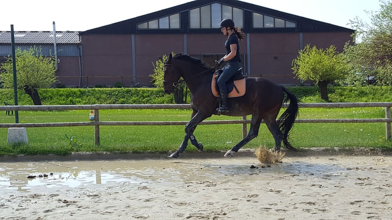 Schicker 5jähriger Wallach „Finn“ von For Gold x Stanford x Don Bosco aus privater Zucht zum Verkauf. Mit Vater For Gold (Steffi Wolf) und Muttervater Stanford (Steffi Wolf und Dorothee Schneider) stehen zwei ehemalige WM Finalisten im Pedigree. https://www.horsetelex.nl/horses/pedigree/2205009/finn Mutter Siena ist im Hannoveraner Pr St. PHD aufgenommen. Finn zeigt sich sehr unkompliziert und ist auch von Fremdreitern in allen drei GGA gut zu reiten. Wir sind sehr zufrieden mit seiner bisherigen Entwicklung, seine guten GGA und seine Lernfähigkeit zeichnen Finn aus. Für sein Alter zeigt er sich beim Reiten/ Springen/Longieren und im Umgang sehr brav und unerschrocken. Springen/ Freispringen und Stangentreten machen ihm richtig Spaß! Finn kennt In- sowie Outdoor Bewegung und ist vertraut mit Verladen. Er macht auch gerne einen Ausflug in ländlicher Umgebung, alleine sowie in der Gruppe. Finn geht problemlos in der Führanlage und hat keine Angst vor Wasser. Guter Züchter TÜV vom 17.11.2022 vorhanden ( 19 R. Bilder). Zahnbehandlung Oktober 2023 und August 2024 und Februar 2025 sowie Januar 2026. Finn wird regelmäßig geimpft und entwurmt, auch ist er regelmäßig beim Schmied (Barhufer). Er sucht jetzt seinen Reiter, der ihm die nötige Zeit gibt zu reifen um sein volles Potential auszuschöpfen. Momentan wird Finn in Dressur und Springen gefördert. Er liebt Entspannungsrunden im Gelände nach der Arbeit. Finn ist in 2025 2 Dressurpferdeprüfungen A gestartet und wird aufgrund seiner Springveranlagung in naher Zukunft an Springprüfungen teilnehmen. Gerne vereinbaren wir wenn gewünscht einen Termin zur Vorstellung bzw. Ausprobieren. Video bei Interesse auf Anfrage.