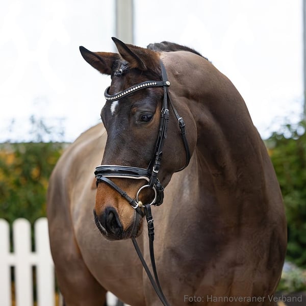 Das Pferd ist ein Verdener Auktionspferd und wird am 18.04.2026 onlive versteigert. Vom 6.04. bis zum 18.04. kann das Pferd jeden Tag beim öffentlichen Training besichtigt und ausprobiert werden. Das Startgebot bei der Versteigerung ist 8.000 Euro. Badu präsentiert sich rittig und bewegt sich bemerkenswert geschmeidig. Er stammt aus einem liebevollen Züchterhaus, wurde schonend ausgebildet und ist mit Alexandra von Samson-Sager erfolgreich in einer Dressurpferdeprüfung der Klasse A platziert. Seine beiden Vollgeschwister Bo und Belle Rouge sind bereits erfolgreich in Dressurprüfungen der Klasse M. Die Großmutter ist Mutter von sieben sporterfolgreichen Nachkommen, darunter vier mit Erfolgen in der schweren Klasse, u. a. Donna Erika v. Don Frederico mit Julia Gina, VA 20217). Sportname: Badu 6 Sporterfolge: DPF: A 1/4. 1. Generation Sportpferde Dressur: HannPrA Belle Rouge/Belle Rouge 7 v. Belissimo M (DRE: M** mit Sophia-Katharina Ackemann); HannPrA Bo/Bo 73 v. Belissimo M (DRE: M* mit Alexandra Samson-Sager). 2. Generation Sportpferde Dressur: Dolcetto 24 v. Don Frederico (DRE: int. S*** mit Natalia Plata,Europameistersch.JR Kür Dressur 2025,Europameistersch.JR Dressur 2025,Europameistersch.JR Dressur -Mannschaft- 2025,FoVA 2007: 18.000 €); Delina E/Donna Erika v. Don Frederico (DRE: S*** mit Julia Giner,Deutsche Amateur-Meisterschaft Dressur 2024,FoVA 2014,Herwart von der Decken-Schau Verden 2017); Don Ludovici v. Don Frederico (DRE: int. S* mit Linnea Lyden,FoVA 2004); Dreaming on Clouds v. Don Frederico (DRE: S*** mit Juliane Zemitzsch); StPr LS Rosegold/La Hermosa 2 v. Rock Springs (DRE: M** mit Ludwig Heskamp); Dark Pearl E/Dark Pearl v. Don Frederico (DRE: M* mit Eva-Maria Pühringer,FoVA 2009). Auktionspferde: Dillon v. Don Frederico (VA 2020); Diana E v. Don Frederico (FoVA 2011); Disco Queen/Disco Queen E v. Don Frederico (FoVA 2008); Don Giovanni 103 v. Don Frederico (VA 2010). Bes. Prämientöchter: HannPrA Roxanne E/Roxanne E 3 v. Rock Springs (Herwart von der Decken-Schau Verden 2024); HannPr Dancing Fire E v. Don Frederico; HannPr Hoheit E v. Hochadel. 3. Generation Aufbauprüfungen Dressur: Weltino E v. Weltmeyer (DRE: L). 4. Generation Aufbauprüfungen Springen: Askari E v. Amoroso (SPR: L). 5. Generation Sportpferde Dressur: REX THE BLACKY v. Ortwin (DRE: Grand Prix mit REHBEIN,KARIN,Dressurprüfung - Grand Prix 1987,Dressurprüfung - Grand Prix 1987,Dressurprüfung - Grand Prix 1987,Dressurprüfung - Grand Prix 1987,Dressurprüfung - Grand Prix Special 1987,Dressurprüfung - Grand Prix Special 1986,DM Gesamtwertung Dressur Sen. 1986,Dressurprüfung - Grand Prix 1986,Dressurprüfung - Grand Prix Special 1986,Dressurprüfung - Grand Prix 1986,Dressurprüfung - Grand Prix 1986,Dressurprüfung - Grand Prix 1986,Dressurprüfung - Grand Prix Special 1985,Dressurprüfung - Grand Prix 1985,Dressurprüfung - Grand Prix 1985,DM Gesamtwertung Dressur Sen. 1985,Dressurprüfung - Grand Prix 1985,DM-Wert.Jr.Dress.Kl.S 1985,Dressurprüfung - Grand Prix 1985,Dressurprüfung - Grand Prix Special 1985,Dressurprüfung - Grand Prix 1985,DM-Wert.Jr.Dress.Kl.S 1985,Dressurprüfung - Grand Prix 1985,DM-Wert.Jr.Dress.Kl.S 1985,Dressurprüfung - Grand Prix 1985,DM-Wert.Jr.Dress.Kl.S 1985,Dressurprüfung - Grand Prix Special 1985,Dressurprüfung - Grand Prix 1985,DM-Wert.Jr.Dress.Kl.S 1984,Dressurprüfung - Grand Prix Special 1984,Dressurprüfung - Grand Prix 1984,DM-Wert.Jr.Dress.Kl.S 1984,Dressurprüfung - Grand Prix Special 1984,DM Gesamtwertung Dressur Sen. 1984,Dressurprüfung - Grand Prix 1984,DM-Wert.Jr.Dress.Kl.S 1984,Dressurprüfung - Grand Prix Special 1984,Dressurprüfung - Grand Prix 1984,Dressurprüfung - Grand Prix 1984,Dressurprüfung - Grand Prix 1984,DM-Wert.Jr.Dress.Kl.S 1984,Dressurprüfung - Grand Prix 1984,DM-Wert.Jr.Dress.Kl.S 1983,DM-Wert.Jr.Dress.Kl.S 1983,Dressurprüfung - Grand Prix 1983,Dressurprüfung - Grand Prix Special 1983,Dressurprüfung - Grand Prix 1983,Dressurprüfung - Grand Prix 1983,DM-Wert.Jr.Dress.Kl.S 1982,DM-Wert.Jun.Dress.Kl.M 1981); Whippet 10 v. Wolkentanz (DRE: S** mit Heiner Eppinger). Sportpferde Springen: Warwick E v. Wanderbursch II (SPR: M mit Schönauer,Beatrice); Donane v. Donani (SPR: M mit Eiken,Ulrike); Aby 1 v. Azur (SPR: M mit Gerhardt,Stefan); LUCINDA 8 v. Luchs (SPR: M mit KORDING,SUSANNE); Orsono v. Ortwin (SPR: M mit Muenz,Karl-Josef 0106). Sportpferde Fahren: Grisu 354 v. Renomee (Fahren: S mit Uwe Bollinger). Aufbauprüfungen Springen: Asterios v. Amerigo Vespucci (SPR: L,VA 1998,FoVA 1993); Ayscha 5 v. Askan (SPR: L); Eugenia/Eyreen 2 v. Exponent (SPR: L); Aby Powerpack v. Azur (SPR: L); OSTWIND 25 v. Ortwin (SPR: L). Auktionspferde: Wilma D/Wilma 172 v. Wittelsbach (VA 1995); Domenico 8 v. Diamont (VA 1984). Mutter: Disco Queen ZL: 8/7 ZSP: Feldprüfung Reitpferd - Trab 7,50 Galopp 7,50 Schritt 7,50 / Durchschnitt Rittigkeit 8,50 / Durchschnitt Springen 6,50 Großmutter: Weldon E ZL: 14/11 ZSP: Feldprüfung Reitpferd - Trab 7,00 Galopp 7,00 Schritt 8,00 / Durchschnitt Rittigkeit 7,00 / Durchschnitt Springen 7,50