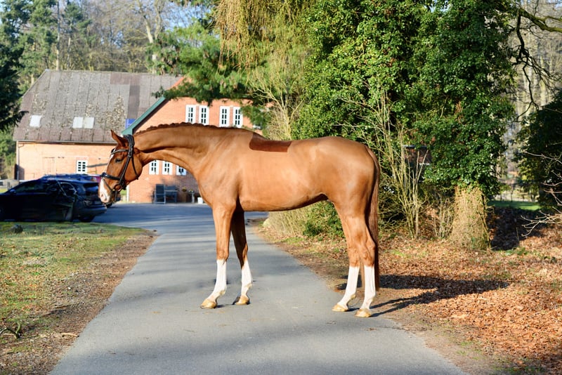 ❤️BAROLO ❤️ ☘️2021 gelding by Bonds-L’Espoir-Florestan I 🔛https://youtube.com/shorts/cCSVmdu2INw?feature=share ✴️Top mover by the champion stallion Bonds! This bright and eye-catching young star attracts attention not only with its striking appearance but also with its excellent natural gaits. ✴️Barolo has already been successfully presented in riding horse inspections and shows great potential as a promising young prospect with excellent future prospects. ✴️His sire Bonds was an Oldenburg champion stallion and is successful up to S-level, having sired 25 licensed stallions, including the 2025 Oldenburg champion stallion and the DSP champion stallion Bonds in Gold, which was sold at auction for €770,000. ✴️Barolo’s full brother has been licensed, and from this dam line come, among others, Bodyguard, who is successful up to Inter I, as well as several international show jumpers and licensed stallions such as Amazone (1.60 m), Vulkan L, and others. ‼️Digital X-ray examination available 🏡Location: 27801 Dötlingen