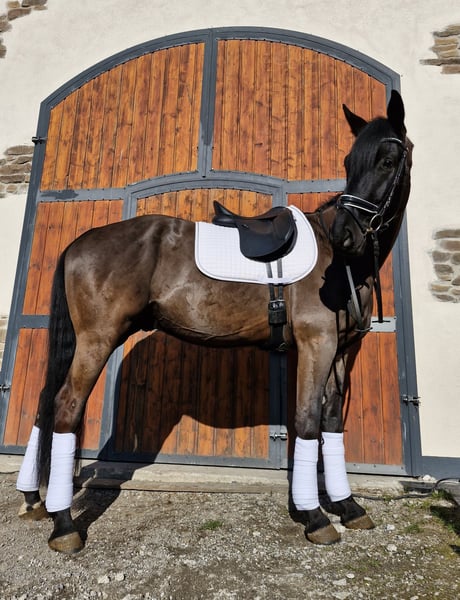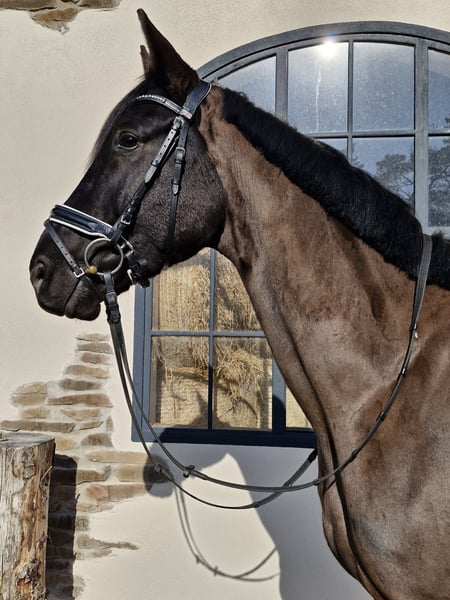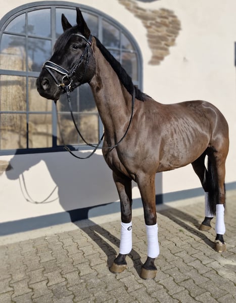 Zum Verkauf steht ein talentierter 5-jähriger Hannoveraner Wallach (geb. 2021), Rappe, E-fertig ausgebildet und mit viel Potenzial für den Dressursport bis A-Niveau. Besonders hervorzuheben ist sein ausdrucksstarker, schwungvoller Trab mit viel Raumgriff, der ihn für ambitionierte Reiter interessant macht. Abstammung: Vater: Apache – international bis Grand Prix erfolgreich, bekannt für Rittigkeit und Bewegungsqualität Mutter: Hauptstutbuch Verdena von San Amour aus einer Tochter von Sandro Hit Damit vereint er bedeutende Dressurvererber wie Apache, Gribaldi, San Amour und Sandro Hit in direkter Linie. Ausbildung & Training: Schonend angeritten im Herbst 2024 Weitergeritten bis Mai 2025, anschließend Weidepause Seit Oktober 2025 wieder im regelmäßigen Training Er kennt: Bodenarbeit Longieren Stangenarbeit Ausritte Er ist E-fertig ausgebildet und kann perspektivisch auch A-Turniere gehen. Er kennt bereits verschiedene Reitanlagen. Spaziergänge alleine meistert er problemlos, beim Alleinreiten benötigt er aktuell noch etwas Begleitung. Charakter: Ein sehr lieber, menschenbezogener und lernwilliger Wallach, der sich im täglichen Umgang unkompliziert zeigt. Gesundheit: TÜV ohne Befund regelmäßig geimpft und entwurmt schmiedefromm Besonderheiten: Stockmaß ca. 1,70 m, altersbedingt noch leicht im Wachstum Rappe, korrekt gebaut Besonders hervorzuheben ist sein starker, raumgreifender Trab Viel Potenzial für den Dressursport, auch als gehobenes Freizeitpferd interessant Videos: Aussagekräftige Videos vom Reiten und Longieren können bei Interesse gerne zugesendet werden. Probereiten: Nach Terminvereinbarung möglich. Für das Probereiten wird eine Gebühr von 30 € erhoben. Er wird nur in fördernde und wertschätzende Hände abgegeben.