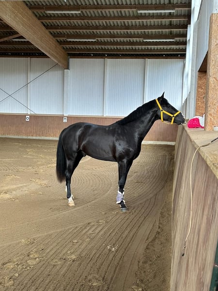 With a heavy heart, I am looking for a new home for my beloved 5-year-old gelding, as he unfortunately cannot meet my sporting ambitions in dressage. He is a very balanced, friendly horse with a great character and is absolutely uncomplicated in handling. For his age, he appears calm, reliable, and people-oriented. He is experienced in both group and solo rides in the terrain and is always well-behaved and composed. He is familiar with everyday situations such as dogs, cats, or chickens and remains relaxed. He is used to herd life and currently stands comfortably with other geldings – both on pasture and occasionally in the box. He has been solidly trained in dressage (successfully presented at competitions). Very easy to ride – even suitable for children (see last picture). However, due to his radiological findings, he is not suitable for competitive sport. I am therefore looking for a loving home where he can be appreciated as a leisure partner and continue to enjoy a good horse life. He is especially suitable for someone looking for a reliable partner for relaxed rides, groundwork, or a calm leisure activity, including children. Fully vaccinated Priority goes to the well-being of the horse over price – it is important to me that he finds a good home. Please feel free to contact me at 015112514301 if you have any questions.