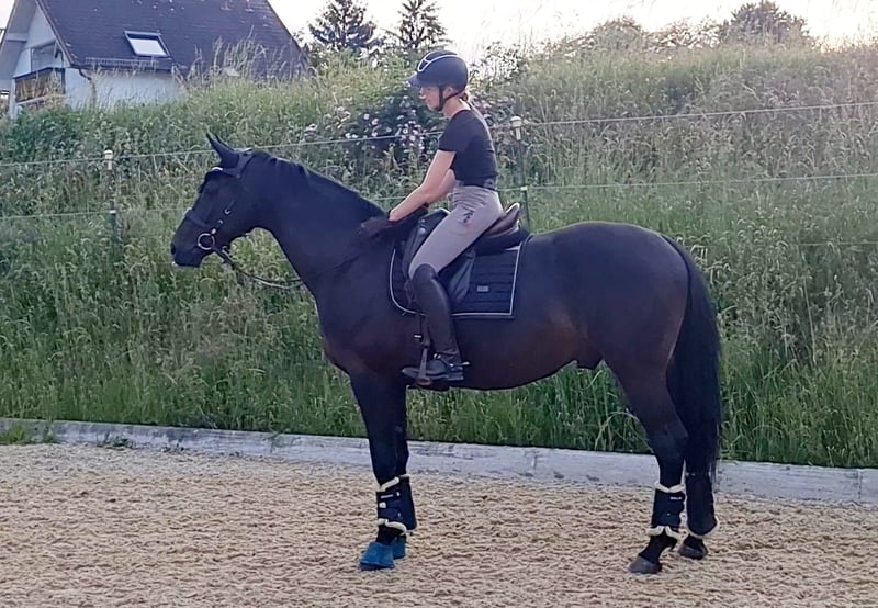 **Verkaufsanzeige: Traumhafter Hannoveraner Wallach zu verkaufen** Zum Verkauf steht ein wunderschöner Hannoveraner Wallach, geboren im Jahr 2020. Mit einem Stockmaß von 170 cm ist er der ideale Partner für Dressurreiter, die auf der Suche nach einem talentierten und anpassungsfähigen Pferd sind. Aufgrund seines leicht stämmigen Körperbaus deckt er Reiterinnen und Reiter in verschiedenen Größen ab (als Beispiel: Reiterin am Foto/im Video hat eine Größe von 173cm). Seine auffällige schwarzbraune Fellfarbe (im Winter ist er dunkler, im Sommer heller) und sein elegantes Auftreten machen ihn zu einem echten Blickfang. Der Wallach zeigt bereits vielversprechende Ansätze in der Dressur und hat das Potenzial, sich in diesem Bereich weiterzuentwickeln. Er wurde bereits erfolgreich auf Dressur Turnieren vorgestellt und nahm auf mehreren Dressur Kursen auswärts teil. Dabei verhält er sich außergewöhnlich ruhig und nervenstark. Er ist leicht im Genick und sehr fein zu reiten, obwohl er sehr viel Go hat. Der Wallach verfügt über drei top Gangarten! Er hat viel Schwung, ist aber trotzdem angenehm zu sitzen. Er ist brav im Umgang, gut erzogen und zeigt sich sowohl im Training als auch im Gelände kooperativ und motiviert. Auch alleine ausreiten ist kein Problem! Im Sommer wurde er am Reitplatz bei Flutlicht trainiert, dabei ist er unerschrocken und konzentriert, egal ob alleine oder mit mehreren Pferden. Ideal für Reiter, die ein Pferd suchen, das sowohl im Sport als auch in der Freizeit Freude bereitet. Er ist sehr sozial und absolut freundlich zu jedem, egal ob Mensch oder Tier. Des Weiteren verfügt er über einen einwandfreien TÜV! Siehe die Dokumente unten. Er hat weder ein Überbein noch sonst etwas! Kerngesundes Pferd! Bei Interesse oder weiteren Fragen stehe ich gerne zur Verfügung. Besichtigungen sind nach Vereinbarung möglich. Auf Wunsch sende ich gerne mehr Videos zu!