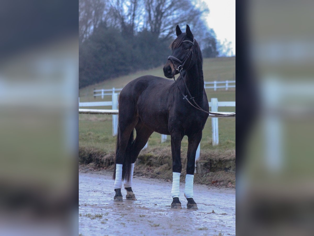 This 5-year-old gelding is currently looking for his perfect home. Dreamy stands approximately 1.73 meters tall and truly lives up to his name. Whether on the lead or under saddle, he is always an absolute sweetheart. He learns very quickly under saddle and brings great joy with his gentle nature. He is still at the beginning of his training, but already jumps small courses and shows enjoyment in pole work. I can see him as both a leisure horse and an excellent training horse for dressage or show jumping. He has three good gaits, with the walk and canter being particularly notable. Due to his temperament, he is suitable for a nervous or less experienced rider. He is also very friendly towards other horses. Currently, he spends half of the day on the paddock with us. If you are looking for an honest and sensible horse, you’ve come to the right place. We wish him a loving home with a family environment. A recent TÜV inspection from 2023, with no findings, including assessments of his back, neck, and poll, is available. Trial rides are of course possible, and videos can be sent upon request. For questions, please contact us at: 0157 56375226 Pedigree: Dream Boy x Van Gogh