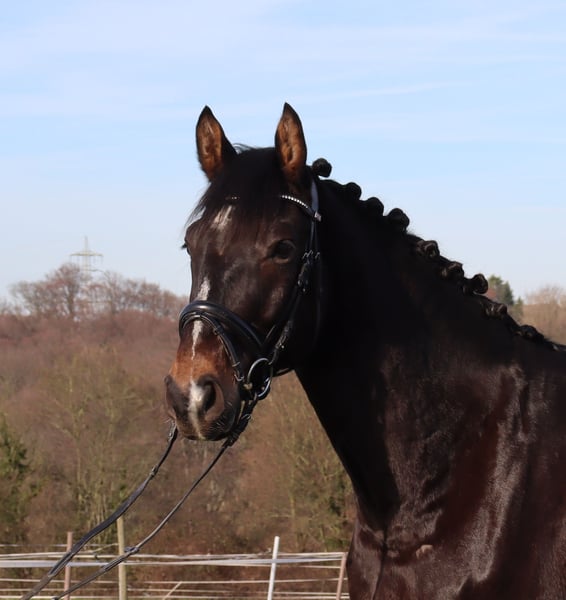 Charming, expressive, rideable, and well-behaved young dressage prospect seeking loving and nurturing hands. This talented and motivated gelding is by Escolar NRW, a top performer under Hubertus Schmidt with successful qualifications for the Olympics, out of a mare by His Highness. The dam mare, His Hellen, has already foaled a licensed stallion. Escardo H is directly purchased from the breeder and has grown up healthy and appropriately in a herd environment on our farm. He has been gently and lovingly backed and trained here. Escardo H has undergone an excellent clinical pre-purchase examination and extensive X-ray diagnostics, all without any findings. I am looking for a dedicated rider who enjoys the training of this young dressage horse. Ideally, I wish for Escardo to have at least some turnout on pasture during the summer and regular opportunities to move freely during the winter. In my opinion, this is essential for a happy horse life.