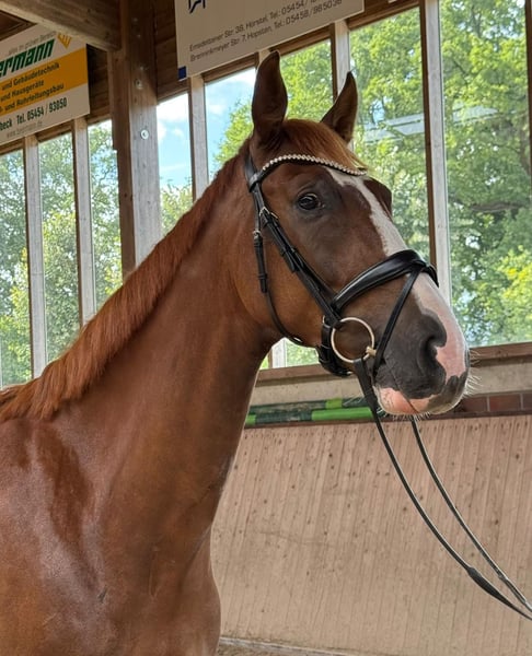 Lohriot, ein Fuchswallach aus dem Jahr 2021 von Livaldon/Falsterbo/Gelriaist, ist nicht nur optisch mit seinen vier hohen weißen Beinen ein echter Hingucker, sondern überzeugt vor allem mit seinem einzigartigen Charakter, der im täglichen Umgang Maßstäbe setzt! Mit ca.1,74m bringt dieser Kumpeltyp beste Voraussetzungen für eine erfolgreiche Zukunft als dressurveranlagter, verlässlicher Freizeitpartner mit. Was ihn besonders macht? Seine ausgeprägte Coolness, Ruhe und Rittigkeit. Egal ob im Umgang, beim Reiten oder in neuen Situationen – dieser Wallach bleibt gelassen und nervenstark. Eine coole Socke durch und durch! Dabei ist er stets ehrlich und dem Menschen zugewandt. Lohriot ist altersentsprechend, aber schonend ausgebildet, kennt Halle, Platz, Gelände, erste Sprünge und den Alltag auf dem Reitplatz. Er kommt direkt vom Züchter, zeigt sich lernbereit, kooperativ und bewegt sich mit drei guten Grundgangarten. Besonders hervorzuheben ist dabei seine raumgreifende Galoppade. Ein TüV liegt vor. Zwei Chips wurden vor seinem Anreiten entfernt. Wir wünschen uns für ihn einen Endplatz bei einem Herzensmenschen, der ein ehrliches Pferd mit herausragendem Charakter zu schätzen und zu fördern weiß! Infos unter 017621252833