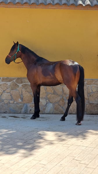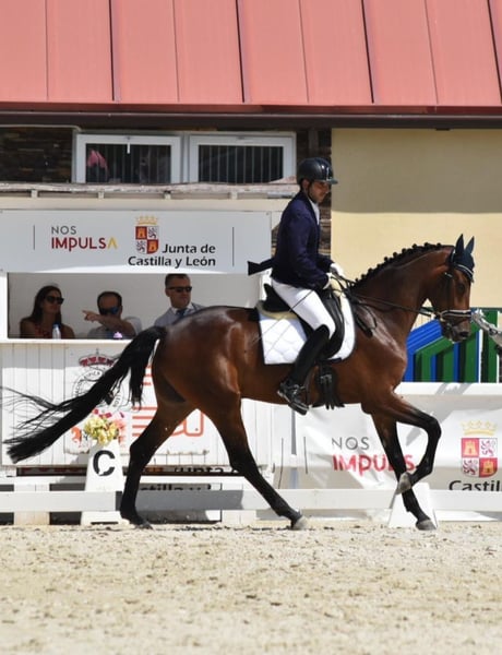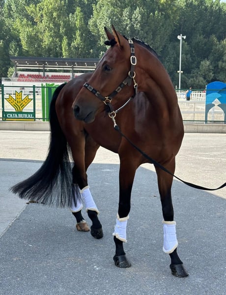 POR LA VIE Vivaldi x Sandro Hit Hannoveriano – Castrado – 5 años – 175 cm Espectacular caballo joven nacido en febrero de 2021, con un gran futuro para la doma clásica gracias a su calidad, presencia y extraordinarios movimientos. Destaca por tres aires de gran calidad: Paso amplio y elástico, con gran claridad en las pisadas. Trote expresivo, con suspensión natural y muy buen uso del dorso. Galope equilibrado, con cadencia y capacidad de reunión, ideal para el desarrollo hacia los niveles superiores. Ha participado con éxito en competiciones de caballos jóvenes, mostrando siempre regularidad, actitud y capacidad de aprendizaje dentro de la pista. Posee un carácter inmejorable, noble y colaborador. Es un caballo dispuesto a trabajar y con gran deseo de agradar, lo que lo convierte en una excelente opción para un jinete o amazona experimentad@ que quiera seguir desarrollando su potencial deportivo. Acostumbrado a vida en box, prado y caminador eléctrico, con manejo diario sencillo. Un caballo joven con talento, cabeza y calidad, listo para continuar su proyección en la competición. 📍 Más información y vídeos disponibles bajo petición.