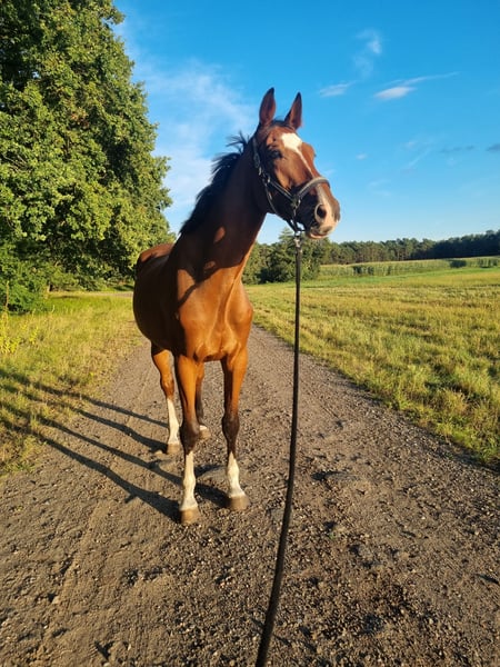 Ich suche für meinen 5 jährigen Wallach eine zuverlässige Reitbeteiligung. Aufgrund seines Alters sollte eine gewisse Erfahrung vorhanden sein, bitte keine Anfänger. Er ist super lieb und verschmust. Bocken, Steigen oder sonstige Unarten kennt er nicht. Er wird aktuell von mir Springpferde A geritten, in der Dressur würde ich ihn auch auf diesem Niveau beschreiben. Kurzkehrt, Rückwärtsrichten und weitere Lektionen setzt er schon um. Im Gelände geht er alleine oder in der Gruppe total entspannt. Gesucht wird jemand für 2-3 x die Woche. Entweder bist du ambitioniert und möchtest dir etwas erarbeiten; Unterricht, Lehrgänge oder vielleicht sogar mal ein Turnier. (Vorrangig in der Dressur) Oder du möchtest nur die Seele baumeln lassen und deine Freizeit im Gelände verbringen. Hier wäre mir allerdings trotzdem wichtig das du weißt wie man ein Pferd gut und gleichmäßig reitest. Hierzu gerne persönlich mehr. Wir haben eine Reithalle, Außenplätze und ein super Ausreitgelände. Wenn du dich angesprochen fühlst, freue ich mich auf eine Nachricht. Gerne auch per WhatsApp 015252664231