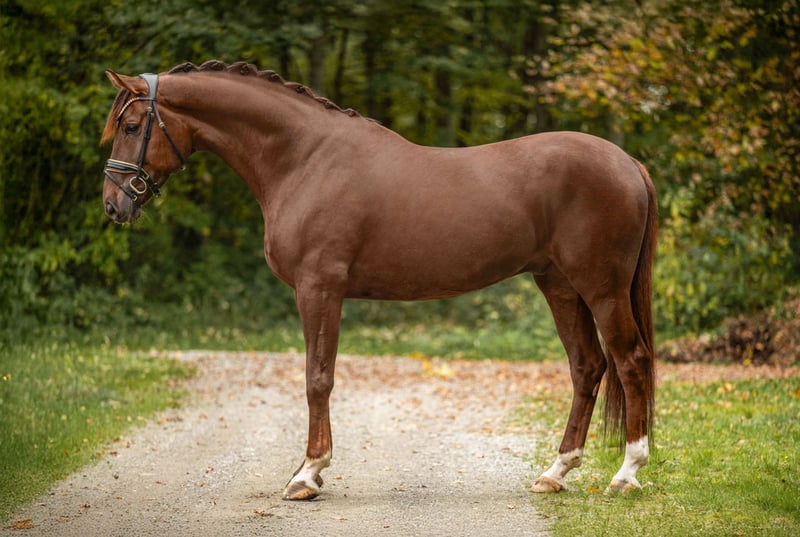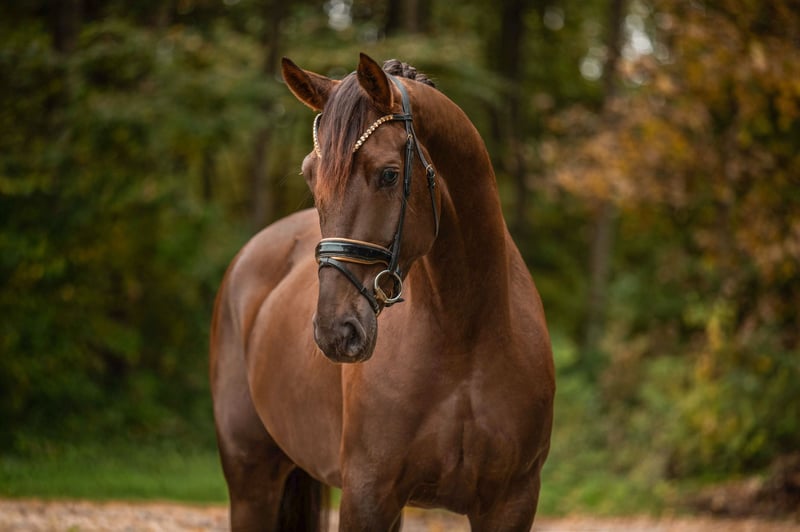 Dear Interested Parties, To arrange a trial ride, please send me a WhatsApp message. For further questions, I am available during the day via WhatsApp, and you can reach me best by phone between 4 PM and 7 PM. I look forward to hearing from you. www.angelina-devittorio.de ⭐️ Florence ⭐️ Age: 5 years (2020) Height: approximately 17.6 hh Pedigree: Finnigan x Hochadel Training level: DrPf A level, started in L Health check: Good X-ray images available For sale is a stunning, impressive dark chestnut gelding, a beautiful son of Finnigan. This exceptionally handsome gelding impresses not only with his commanding presence but also with his talent and quality across all three gaits. He features an outstanding uphill canter, an enormous walk, and excellent trot mechanics with a strong hind leg. Coming directly from the first owner, he has been carefully and horse-appropriate trained and promoted. Not yet publicly presented, so the sale price is well below value. With his clear mind, honest character, and strong willingness to please, he is a true dream horse that excites both in daily work and in handling. Florence is absolutely suitable for amateurs, suitable for any rider from L level and with some young horse experience. He is never mean and very well-behaved, but due to his positive, sensitive nature and his size, he is not suitable for inexperienced or weak riders. He is developing into a future prospect that can be specifically prepared over the winter months for the L and M class movements and will bring great joy to his new owner. ⚜️ Phone: 0171-3438949 ⚜️ Email: a.devittorio@web.de ⚜️ https://www.ehorses.de/angelinadevittorio Facebook and Instagram: Angelina De Vittorio