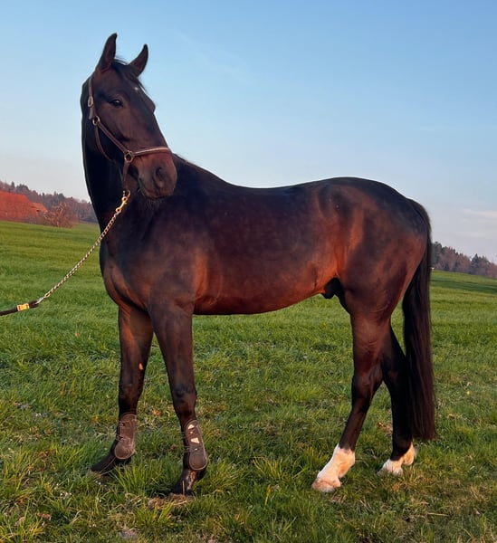 Zum Verkauf steht ein eleganter Hannoveraner Wallach, geboren im Jahr 2021, mit einem beeindruckenden Stockmass von ca. 178 cm. Mit seiner modernen Erscheinung, seinem harmonischen Körperbau und seinem ausdrucksstarken Bewegungsablauf bringt er beste Voraussetzungen für eine erfolgreiche Zukunft im Reitsport mit. Der junge Wallach wurde im vergangenen Jahr schonend angeritten und befindet sich nun am Anfang seiner weiteren Ausbildung. Bereits jetzt zeigt er viel Elastizität, Takt und natürliche Balance in den Grundgangarten. Besonders im Schritt und Galopp überzeugt er durch seine Bewegungsqualität und seine gute Mechanik. Neben seinem sportlichen Potenzial besticht er durch einen ehrlichen, ausgeglichenen Charakter und eine hohe Lern- und Leistungsbereitschaft. Er arbeitet motiviert mit und präsentiert sich im täglichen Training als angenehmer und verlässlicher Partner. Seine Rittigkeit und seine positive Einstellung machen ihn zu einem vielversprechenden Nachwuchspferd für ambitionierte Reiter. Mit seinem kräftigen, gut proportionierten Körperbau, der grossen Schulterfreiheit und seiner natürlichen Bergauftendenz bietet er ideale Voraussetzungen für die weitere Förderung im Dressursport und ggf. im Springsport. Bei Interesse freue ich mich über Ihre Kontaktaufnahme und stelle gerne weitere Informationen, Videos oder eine Möglichkeit zur Besichtigung zur Verfügung.