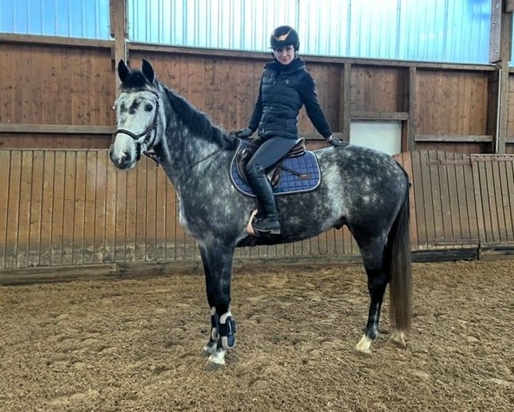 Enchanting, versatile show jumping horse with exceptional rideability and a very people-oriented nature. Flawless in jumping (show jumping test class A* "Zero"), current training level at 1.10 m (Class L) – competition-ready! This heart horse is not only ideal for sport and show jumpers but also delights junior riders, ambitious leisure riders, and families as a loyal companion. The gelding currently appears very mature, motivated, and eager to perform. Under professional saddle training, he is being gently further educated. He is easy to ride, offers an excellent riding sensation, and immediately catches the eye with his positive demeanor. His talent, attitude, and willingness to learn promise significant development potential and a bright sporting future in show jumping. Thanks to his balanced temperament and excellent basic rideability, he is also versatile: suitable for cross-country, terrain, and hunter classes. The gelding is absolutely straightforward, well-behaved, motivated, and eager to learn. He proves to be reliable and confident both in daily training and at competitions. Less experienced riders can also rely on him. In the terrain, he is fearless, confident, and simply a joy to ride. Beautiful, uncomplicated riding – a horse that guarantees fun and enjoyment! We would be happy to show you this wonderful show jumping gelding in person and are available for questions at any time! Feel free to contact us via WhatsApp: +49 176 55323449.