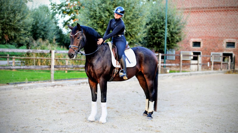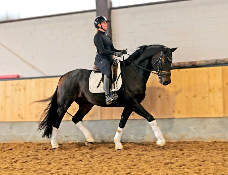 Dieses Bild von einem Pferd zucht seinen Herzensmenschen. Bereits L platziert überzeugt dieser super schicke Kerl mit 3 sehr guten GGA und einem dem Menschen sehr zugewandten Charakter. Er möchte immer dabei sein und freut sich über jede Art der Zuwendung. Er ist problemlos in der Box mit täglichem Weidegang zu halten, kennt aber seit seiner Geburt auch Offenstallhaltung. Er kennt Ausritte genau so wie Stangenarbeit und kleine Sprünge. Er wird hier auch mit Pad geritten und macht das sehr artig. Er läuft bisher immer ohne Eisen da keine notwendig waren. Bei seiner Besitzerin war verladen um zur Halle zu fahren an der Tagesordnung. Gern senden wir Ihnen ein Video : 0177 275 9886 Weitere Infos auch unter: https://www.instagram.com/s/aGlnaGxpZ2h0OjE4MTc0ODc4NjE0MzU4MDAz?story_media_id=3746071437309122263_7420643624&igsh=OWRua2VkeXV3ZTY2