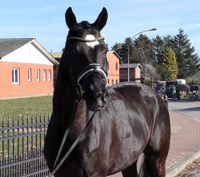 Zu verkaufen ist ein 6jähriger Rappwallach von Secret x Latimer Donnerhall. Er ist ein sehr komplettes Pferd ohne nennenswerte Schwächen. Er überzeugt durch sein angenehmes Temperament und liebenswerten Charakter. Er ist dem Menschen sehr zugeneigt und zudem sehr verträglich in der Herde, sowohl mit Wallachen wie auch mit Stuten. Er ist eine besonders schöne Erscheinung und fällt sehr auf. Sein Talent liegt in der Dressur und er verfügt über drei ausgeglichene, qualitätsvolle Grundgangarten. Aktuell wird er auf L/M Lektionen vorbereitet und zeigt gute Fortschritte. Reitpferdeprüfung hat er gewonnen. Danach wurde er bisher nicht wieder vorgestellt, ist aber sofort einsatzbereit in Dressurpferdeprüfungen der Klasse A. Direkt vom Züchter!