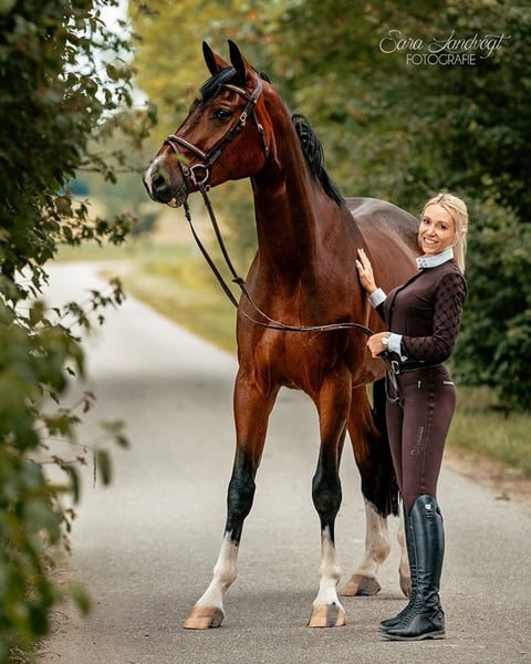 A promising, large and cautious son of Chacoon Blue and Balou du Rouet. Great movements, rideable, effortlessly performs changes and brings joy every day! Well-behaved alone and in a group in the field, during driving, and with the farrier! A horse for high-level sport! Of course, good pictures are also available!