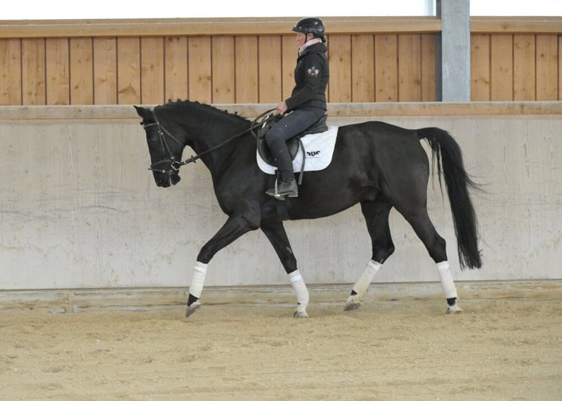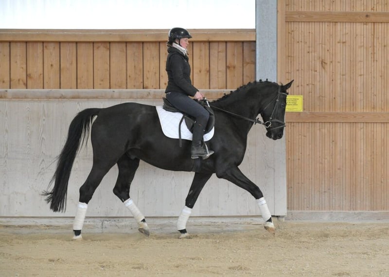 Schicker Hannoveraner-Wallach in begehrter dunkler Jacke von dem bekannten Vererbern Finnigan (Floriscount) und Rotspon. Er besticht durch sein freundliches Wesen und überzeugt mit drei guten GGA. Angenehm zu sitzen und leicht durchs Genick mit praktischer Größe ist er ein toller Partner für Dressur, Springen und Freizeit.