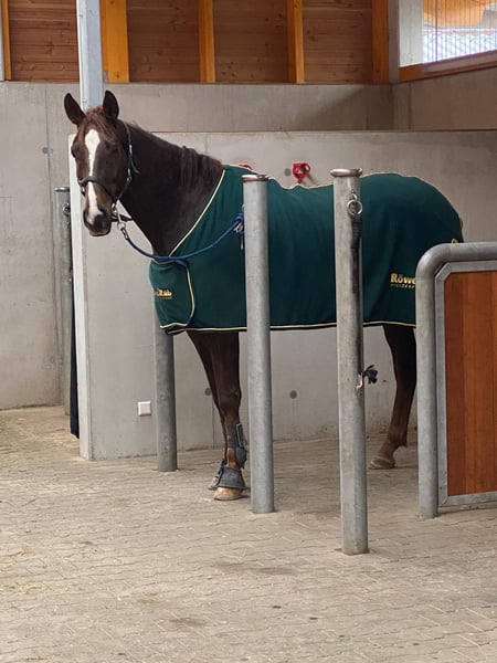 Bildhübscher 7-jähriger Dressur gezogener Wallach in fördernde Hände zu verkaufen. (Direkt vom Züchter) Abstammung: Quantissimo - Finest - Stedinger - Donnerhall - Rohdiamant Dieser unkomplizierte und umgängliche Dunkelfuchs überzeugt mit seinem Charakter und seinen ausgezeichneten Grundgangarten. Er ist sorgsam ausgebildet und auf L-Niveau fertig. Derzeit gut auf M-Niveau unterwegs / in Ausbildung. Erstmals auf Turnier gestartet im Juni 2025 und sogleich den 1. Rang erzielt (Pferde Prüfung A). Erste L Prüfung 3. Rang. Kennt Ausritte im Gelände (hauptsächlich ländliche Umgebung). Dieser talentierte Wallach sucht seine Bezugsperson, die ihn mit Freude weiter fördert, ihm Abwechslung sowie ein sehr schönes zu Hause bietet. Wenn Sie auf der Suche nach einem zuverlässigen Partner sind, der Ihnen viel Freude bereiten wird, dann ist dieser Wallach genau das Richtige für Sie. Preisvorstellung: CHF 32‘000.- Weitere Informationen gerne auf Anfrage.