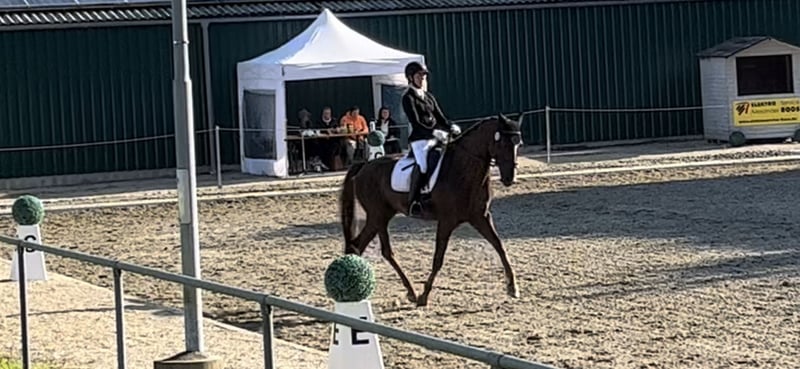 Joli étalon de 7 ans, spécialisé en dressage, à vendre à des mains bienveillantes. (Directement du naisseur) Origines : Quantissimo - Finest - Stedinger - Donnerhall - Rohdiamant Ce hongre bai foncé, facile et sociable, séduit par son caractère et ses excellentes allures de base. Il a été soigneusement dressé et est prêt au niveau L. Actuellement, il progresse bien en niveau M / en formation. Il a participé pour la première fois à une compétition en juin 2025, où il a immédiatement obtenu la première place (épreuve de chevaux A). Premier classement en épreuve L : 3e. Il connaît également les sorties en extérieur, principalement en milieu rural. Ce talentueux hongre cherche une personne de référence qui pourra continuer à le faire progresser avec plaisir, lui offrir de la variété et un très beau foyer. Si vous recherchez un partenaire fiable qui vous apportera beaucoup de joie, ce cheval est fait pour vous. N'hésitez pas à me contacter pour plus d'informations.