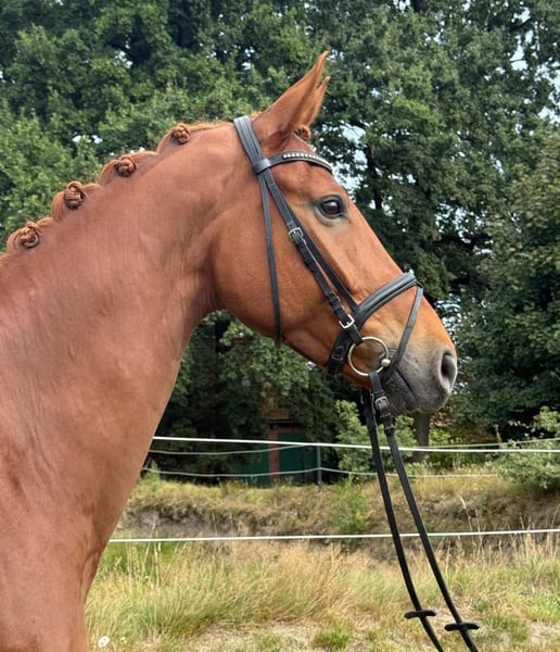 Wir verkaufen unseren 6-jährigen selbstgezogenen Wallach von Zackerey x Fürst Nymphenburg mit einem Stockmaß von 170 cm. Zampano wurde bei uns geboren und wurde 4-jährig angeritten. Seitdem wird er gewissenhaft ausgebildet. In seiner ersten Turniersaison in diesem Jahr konnte dieser typvolle Wallach durch seine drei hervorragenden Grundgangarten direkt mehrfach glänzen und tolle Platzierungen abräumen. Aus der Dressurpferdeprüfung Kl. A konnte er unter anderem zwei Mal mit einer Traumnote von jeweils 8,2 als Reservesieger hervorgehen. Zampano ist ideal für Reiter, die auf der Suche nach einem leistungsstarken Partner für den Dressursport und gleichzeitig liebevollen Freund für die Zukunft sind. Er zeigt viel Potenzial und ist bereit, auf Turnieren alles zu geben. Im Training sind die Lektionen der Kl. L abrufbar und er springt bereits spielerisch die ersten Wechsel. Selbstverständlich kennt er das Verladen und ist brav beim Schmied. Auf unserer Homepage www.dressurpferde-le-ni.de finden Sie ein Video. Wenn der hübsche, bewegungsstarke Wallach Deine Aufmerksamkeit erregt hat, melde dich gerne unter 015146542177.