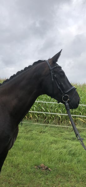 For sale: Hannoverian gelding This beautiful black gelding was foaled in 2019 and stands at 17.3 hh. Due to a suspensory ligament injury, he is currently only rideable at walk. His friendly nature makes him a great companion in the stable and ideal for leisurely walks. If you're interested or need more information, please feel free to contact me. Price is negotiable.