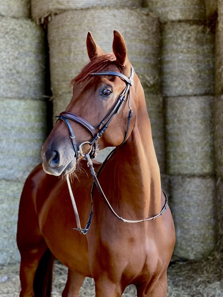 À vendre, un magnifique alezan foncé, né en 2018, issu de Tannenhof's Fahrenheit. Il se distingue par ses trois allures de base attrayantes, sa tête claire et son caractère exceptionnel et sensible. Toujours motivé et désireux de bien faire, il est un véritable partenaire de cœur. Actuellement, il évolue en dressage à un niveau L solide. Il montre également de la joie et du talent en saut d'obstacles et parcourt les parcours avec aisance. En extérieur, il est fiable et intrépide – que ce soit seul ou en groupe. Il est sociable avec les autres chevaux, se laisse ferrer et charger sans problème, et se montre toujours amical, attaché aux humains et sensible dans ses interactions quotidiennes. En raison de son caractère clair et sensible, il convient également aux cavaliers amateurs ambitieux ou aux jeunes cavaliers. Pour toute question, je suis à votre disposition pour plus d'informations ou pour convenir d'un rendez-vous de visite – également par WhatsApp. Les frais pour l'essai monté s'élèvent à 30 € et seront bien entendu déduits en cas d'achat.