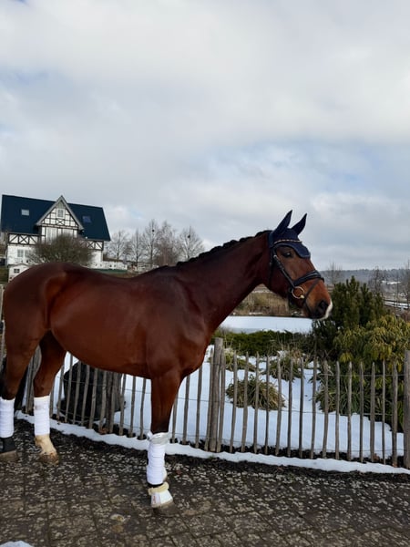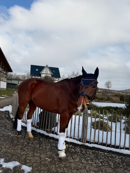 Zum Verkauf steht dieser äußerst brave, ausgeglichene und qualitätsvolle 8-jährige Don Index Wallach, welcher bereits erfolgreich bis zur Klasse L auf Turnier unterwegs gewesen ist! 4-jährig war er mit 8er Noten hoch erfolgreich in Reitpferdeprüfungen, was seine enorme Grundqualität unterstreicht. In der darauffolgenden Zeit konnte er einige Erfolge mit einem Amateur bis hin zur Klasse L* verbuchen und ist nun bereit in der kommenden Saison in den Klassen L**&M* an diese Erfolge anzuknüpfen. Doch nicht nur auf dem Turnierplatz ist er ein zuverlässiger Partner, sondern auch im Gelände. Er zeigt sich in allen Situationen total kopfklar und unerschrocken, was ihn zu dem perfekten Pferd für Kinder, Anfänger, Wiedereinsteiger oder auch ambitionierte Sportreiter macht, da er neben seinem liebenswerten Charakter auch die nötige Qualität für den Sport mitbringt. "Felix" ist ein wirklich liebenswertes Pferd, welches seinem Menschen stets gefallen möchte und einem in der täglichen Arbeit viel Freude bereitet! Natürlich hat "Felix" einen guten Tüv und ist Schmiede und Verladefromm. Mit anderen Pferden ist er super verträglich. Er kann gerne jederzeit in 35708 besichtigt& ausprobiert werden. Bei weiteren Fragen und Interesse: 017620052380, auch WhatsApp möglich.