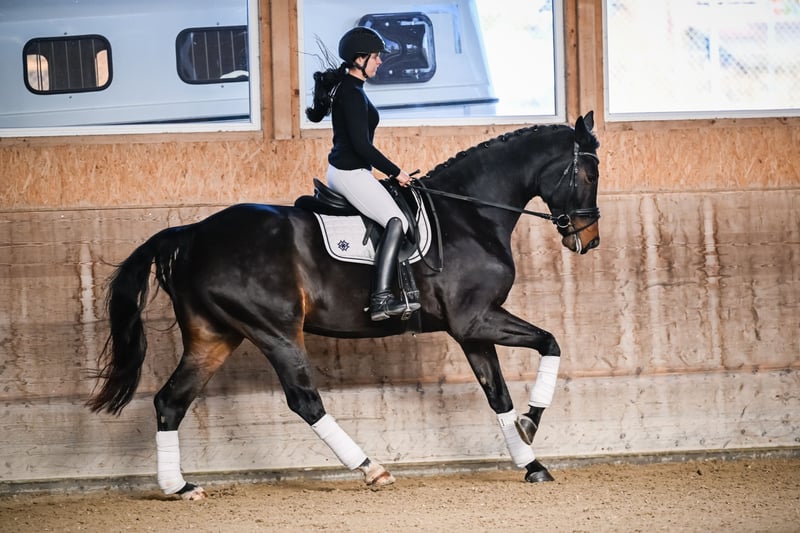 Cavallo stallone molto movimentato con GGA di qualità eccezionale. Nonostante la sua taglia, Backus è molto leggero sui piedi e ha una grande presenza, proprio come ci si aspetta da un cavallo da dressage di alta qualità. È stato iniziato dolcemente, ha partecipato a pochi concorsi ed è piazzato in classe L. Abbiamo appena iniziato con i cambi di galoppo volanti. Per ulteriori domande, si prega di contattare tramite WhatsApp.