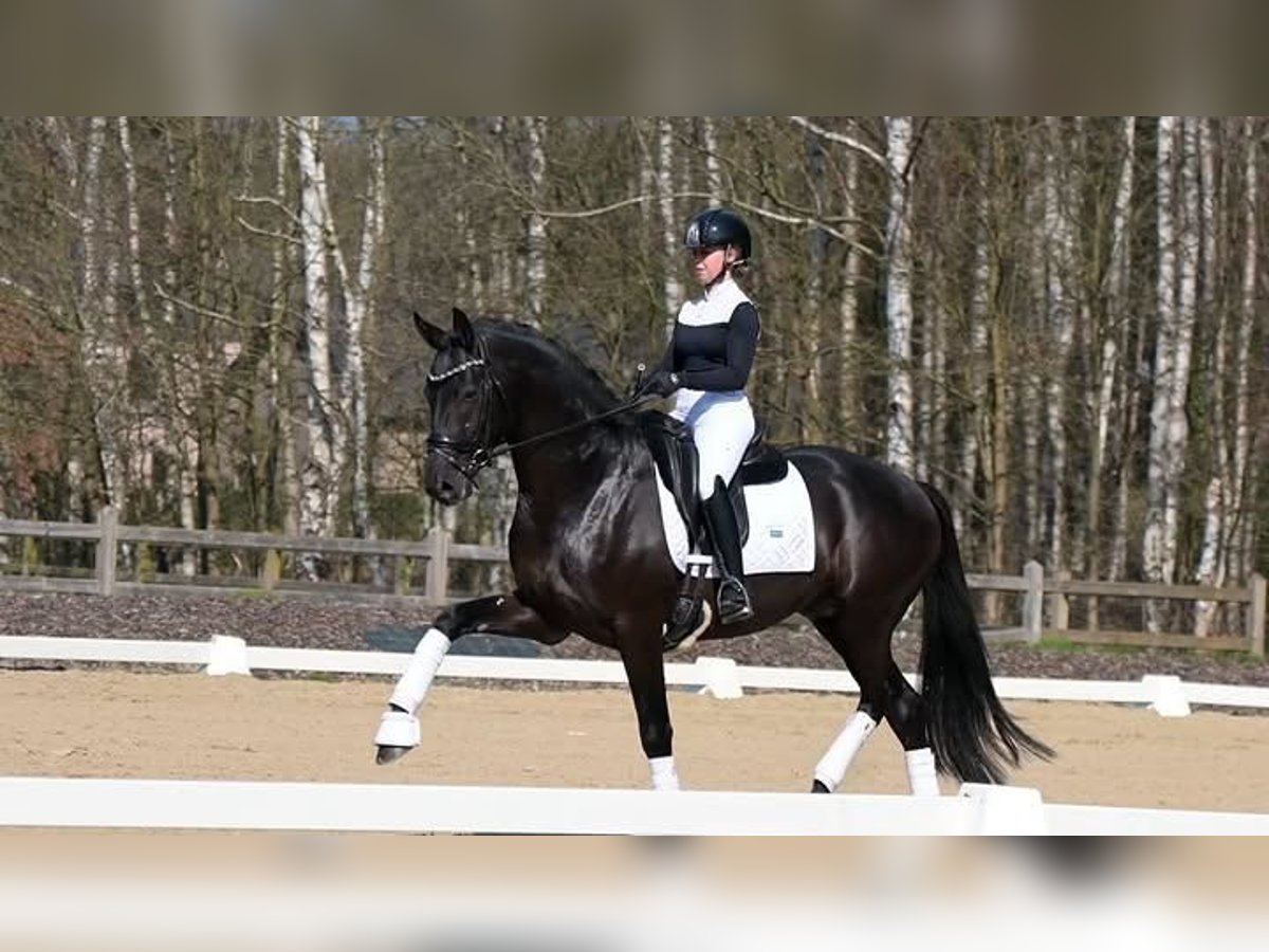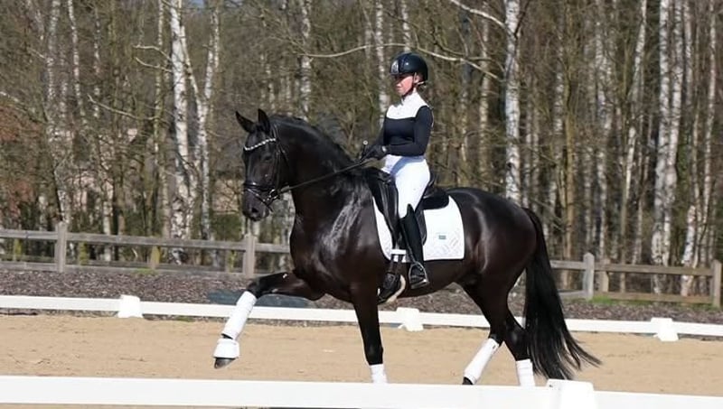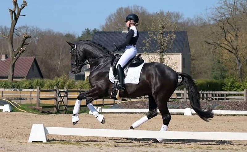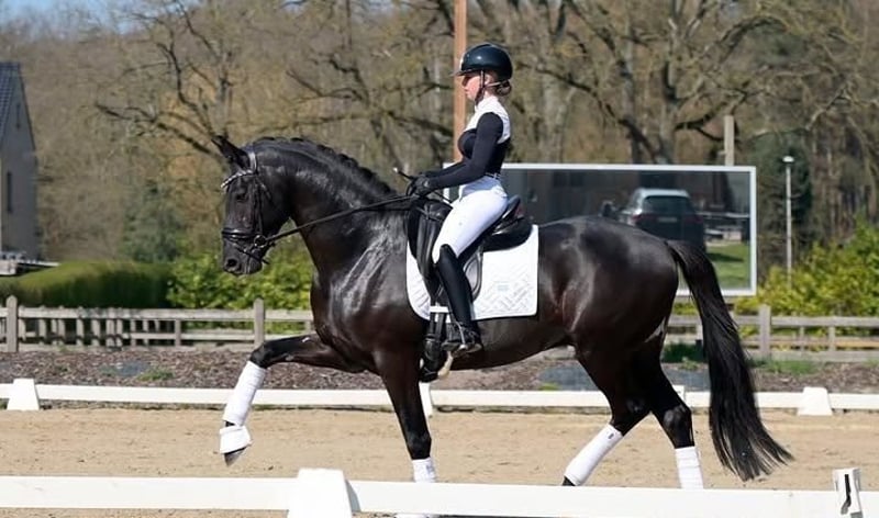 Ein außergewöhnlich attraktiver, komplett schwarzer Hannoveraner Wallach, der sich sowohl im fortgeschrittenen Springen als auch in der höheren Dressur auszeichnet. Dieser elegante Erscheinung vereint Kraft, Beweglichkeit und Ausstrahlung mit einem ausgezeichneten Charakter und großer Arbeitsbereitschaft. Der Wallach verfügt über einen korrekt und harmonisch aufgebauten Körper mit stabilem Fundament, gut entwickeltem Hinterteil und einer Schulter mit viel Bewegungsfreiheit. Dies sorgt für optimale Leistungen sowohl im Parcours als auch in der Dressurprüfung. Seine drei Grundgangarten sind von hohem Niveau: ein gerader, weicher Schritt, ein elastischer und ausdrucksvoller Trab mit viel Impuls und Balance sowie ein kraftvoller, bergauf gesprungener Galopp, der sich hervorragend für anspruchsvollere Aufgaben eignet. Im Springen zeigt er viel Vermögen, eine exzellente Technik und natürliche Vorsicht. Er springt mit viel Abfuhr, guten Reflexen und Übersicht, was ihn zu einem zuverlässigen Partner auf höherem Niveau macht. In der Dressur überzeugt er durch seine feine Anlehnung, gute Einstellung und sein Vermögen zu Sammeln und Tragkraft. Charakterlich ist dieser Wallach zuverlässig, aufmerksam und arbeitswillig. Er besitzt ein stabiles Temperament, ist gut zu reiten und denkt mit seinem Reiter mit. Daher ist er sowohl für professionelle Reiter als auch für ambitionierte Amateurreiter geeignet, die ein Pferd mit Potenzial für den Spitzensport suchen. Seine Gesundheit ist vollständig in Ordnung: Alle veterinärmedizinischen Untersuchungen wurden kürzlich durchgeführt, inklusive umfangreicher Röntgenaufnahmen, ohne jegliche Bemerkungen. Er ist somit sofort einsatzbereit für Training und Turnier. Ein außergewöhnlich vielseitiges Sportpferd, das durch Qualität, Einstellung und elegante Ausstrahlung überzeugt.