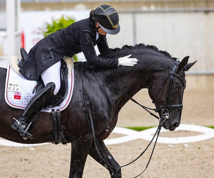 Außergewöhnlich ausdrucksstarker Hannoveraner Wallach, der auf den ersten Blick alle Blicke auf sich zieht. Mit seinem harmonischen Körperbau, der kraftvollen Hinterhand und der eleganten Oberlinie verkörpert er das moderne Sportpferd in Perfektion. Sein edler Kopf mit großen, klaren Augen verleiht ihm nicht nur Ausdrucksstärke, sondern auch einen unverwechselbaren Charme. Dieser wunderschöne Wallach ist zu 100 % gesund. Er verfügt über einen vollständigen Satz aktueller Röntgenbilder sowie umfassende tierärztliche Untersuchungen ohne Befund – eine verlässliche Grundlage für eine erfolgreiche sportliche Zukunft. Seine hervorragende Gesundheit und Belastbarkeit machen ihn zu einem idealen Partner für ambitionierte Reiter. Er wurde schonend und altersgerecht angeritten und zeigt sich unter dem Sattel stets motiviert, lernwillig und nervenstark. Als angehender Allrounder bringt er beste Voraussetzungen für verschiedene Sparten des Reitsports mit, überzeugt jedoch besonders durch seine herausragenden Qualitäten in der Dressur. Seine drei Grundgangarten sind von hoher Qualität: ein raumgreifender, elastischer Schritt, ein schwungvoller Trab mit viel Takt und Ausdruck sowie ein gut gesprungener, bergauf gerichteter Galopp. Durch seine Rittigkeit, seine feine Anlehnung und seine schnelle Auffassungsgabe eignet er sich ideal für Reiter mit gehobenen Ansprüchen, die ein Pferd mit Perspektive suchen. Gleichzeitig besticht er durch sein ausgeglichenes Temperament und seinen freundlichen Charakter im täglichen Umgang. Ein echter Blickfang mit sportlicher Klasse – ein Pferd, das sowohl durch seine Erscheinung als auch durch seine inneren Werte überzeugt und seinem zukünftigen Reiter viel Freude und Erfolg verspricht.