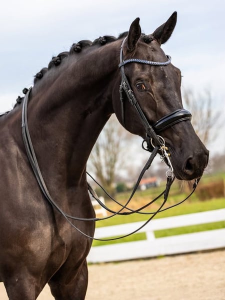 For Sale – Stunning Black Hanoverian Gelding for High-Level Dressage We are offering a beautiful black Hanoverian gelding, combining elegance, power, and excellent aptitude for dressage. With a modern, harmonious, and athletic build, he immediately captivates with his striking presence and natural charisma in the arena. This horse features three exceptional gaits: - A spacious, regular, and well-ruled walk - An expressive trot with strong engagement of the hindquarters, elasticity, and freedom of shoulders - A balanced, uphill canter with great collection capacity Thanks to his outstanding propulsion and natural balance, he demonstrates real potential for advanced dressage. He is trained at an intermediate level and performs exercises such as shoulder-in, piaffer, tempi changes, pirouettes at canter, as well as the basics of passage and piaffe (depending on his current training stage). He is consistently willing, focused, and possesses an excellent work ethic. His temperament is another major asset: balanced, intelligent, and close to humans, he is a pleasure to handle daily. Easy to care for, transport, and shoe, he remains calm even in new environments or during competitions. Health status: A recent comprehensive veterinary examination has been conducted. The clinical assessment is satisfactory, with no notable issues. Recent X-rays (limbs and back) are available and show no significant abnormalities. The complete veterinary record can be provided upon serious inquiry. This gelding represents an ideal opportunity for an ambitious rider aiming to progress in high-level dressage with a talented and reliable partner. For more information or to arrange a test ride, we remain at your disposal.
