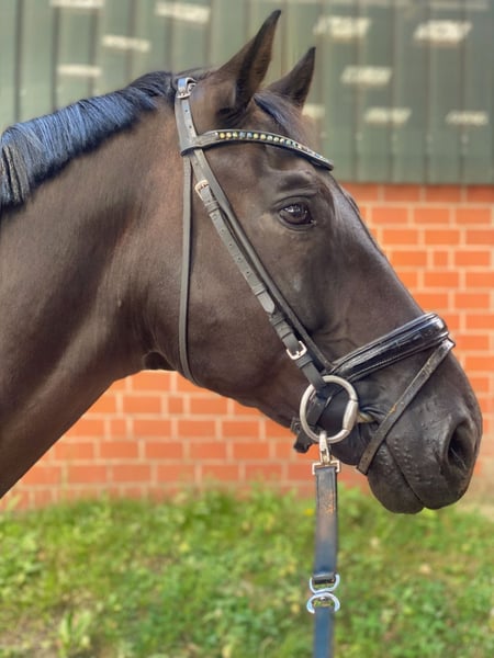 **Sales Advertisement: Hanoverian Gelding** For sale is an impressive, kind Hanoverian gelding, born in 2016. With a height of 179 cm and his elegant black coat, he attracts all attention. This talented gelding is particularly suited for dressage and is already showing promising progress in his training. He has a balanced character and is reliable both in handling and under saddle. He is particularly easy to ride; riding with force and pressure is out of the question!!! Ultimately, he is looking for a good rider who seeks a loyal partner and appreciates the classical values of riding. He should become a partner who develops well with his rider. He is sure-footed in the field and accustomed to large machines and noise. If you are interested or have further questions, please feel free to contact me via email.