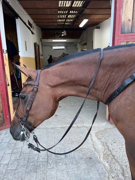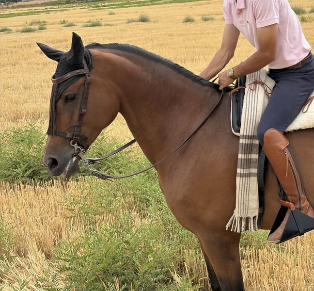 7-year-old Hispano-Arabian mare for sale, with valid passport. She is trained to walk, trot, and canter, and is taken out to the fields daily, making her a well-schooled mare with a good temperament. Ideal for leisure rides or for further progress in dressage. More information and videos available privately.