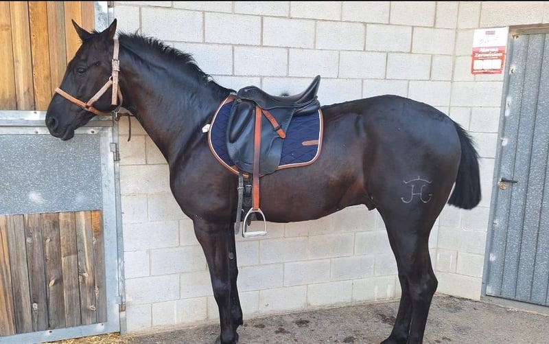 Schwarzer Hispano-Araber mit einer Stockmaß von 1,67 m, vor Kaufprüfung in Ordnung, mit Plaketten.