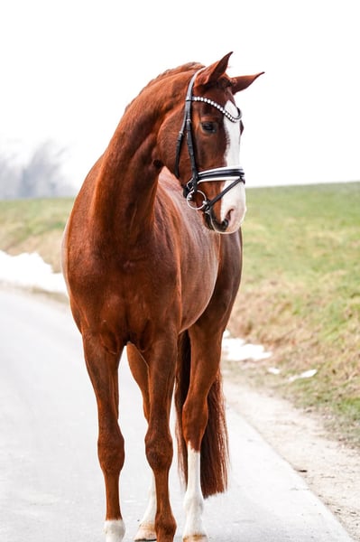 Klaki (born 2021) is a tall, promising young horse with an approximate height of 173 cm (17.1 hh) and is currently competing at dressage horse class A level. He is very rideable and already well-balanced — a horse ready to debut in 2026. His especially impressive feature is his powerful, uphill canter. Klaki has been carefully and age-appropriate trained and comes directly from the breeder. His excellent temperament makes him a reliable and motivated partner for daily training. An ideal young horse for riders who prioritize rideability, quality, and future potential.