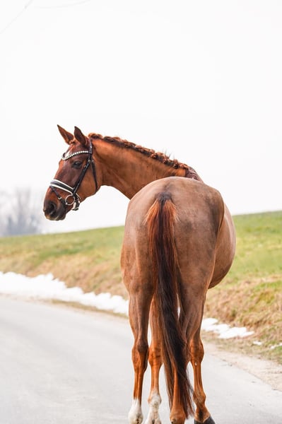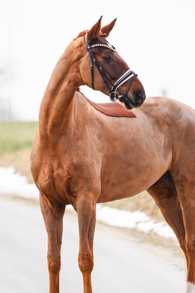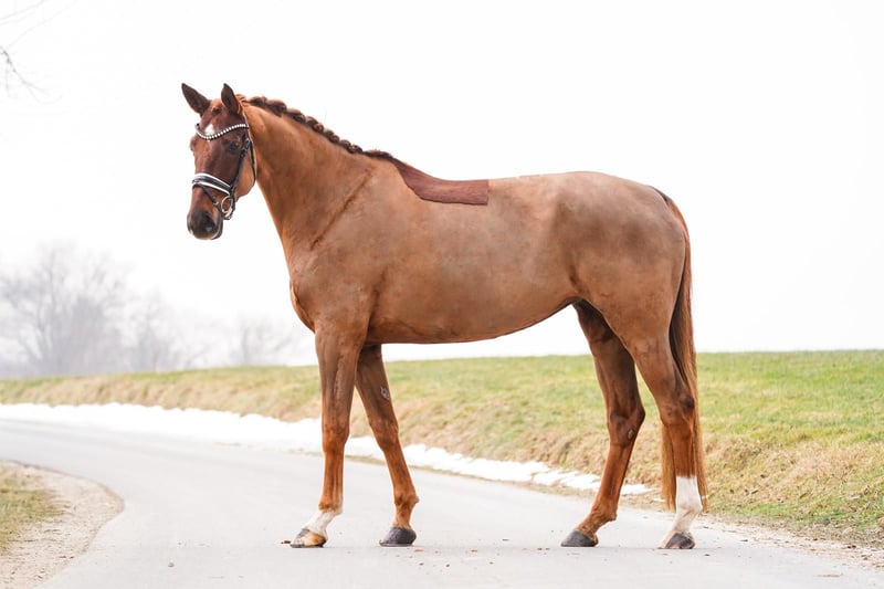 Quadira (born 2018) is a tall mare with an approximate height of 17.8 hands and is confidently trained up to novice level. Her supple basic gaits and sensitive response to aids create a harmonious riding experience, making her a particularly pleasant partner. She is extremely easy to handle in daily training. Quadira impresses with her calm demeanor, reliability, and friendly character, bringing joy every day. A horse that exudes confidence, provides enjoyment, and consistently demonstrates a relaxed and well-behaved nature.