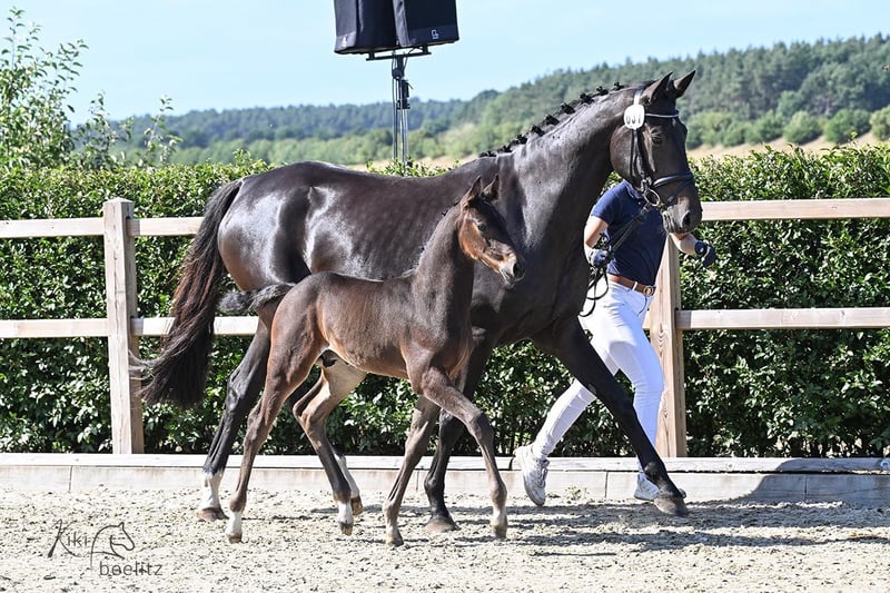 The stylish colt presents himself with great charisma and a good character. He is very people-oriented, confident, and equipped with good basic gaits. Further information, videos, and viewings are possible at any time. Video: at the foal championship of the Völz family, number 31.
