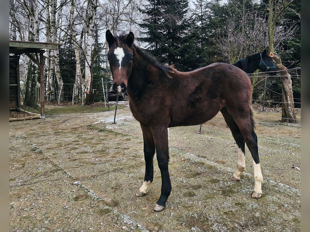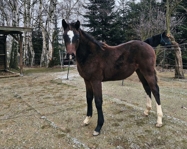 Dieser auffällige Hengst namens Dervano erblickte am 06.06.2025 in unserer Hobbyzucht die Welt. Er ist dem Menschen gegenüber sehr offen und freundlich und lernt sehr schnell.Hufe bearbeiten lässt er schon wie ein großer. Er wächst in einer Aktivstallhaltung auf und zeigt sich da auf verschiedenen Untergründen sehr trittsicher. Zudem ist er mit sehr schönen Gängen ausgestattet. Seine Mutter ist eine Staatsprämienstute von Now Or Never M x Argentinus. Sie wurde bei der Vereinsschau mit der dem 1A Prämie ausgezeichnet und wurde Klassensiegerin. Bei Ihrer Stutenleistungsprüfung ist die Durchschnittliche Wertnote fürs Springen mit 9,0 hervorzuheben. Ihre Nachkommen gehen bereits erfolgreich im Springen sowie in der Dressur. Diarado – Siegerhengst, Starvererber, Leistungsgarant Der Vater und Holsteiner Körsieger von 2007 überzeugt bis heute durch außergewöhnliche Typausprägung, Rittigkeit und Vererbungskraft. Mit über 50 international erfolgreichen 1,60 m-Springpferden, fünf CCI5-Vielseitigkeitspferden und über 100 gekörten Söhnen gehört er zur Weltspitze: • Platz 12 im WBFSH-Springranking • Platz 1 als Vielseitigkeitsvererber. Diarado steht für moderne Sportpferdezucht auf höchstem Niveau – sprunggewaltig, rittig und züchterisch überragend. Er bekommt Papiere vom Holsteiner Verband und gehört zum einem der erfolgreichsten Leistungsstämme 173. Er könnte vorerst auch hier noch zur weiteren Aufzucht stehen bleiben. Preis der Qualität entsprechend, bei passenden Zuhause jedoch verhandelbar.