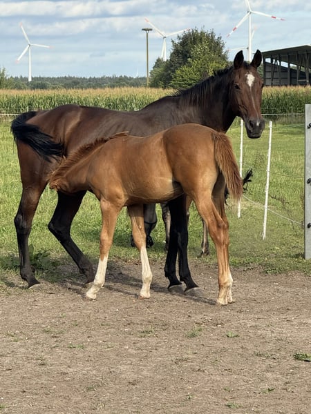 For sale is a promising Holsteiner stallion by Deichkind out of a mother by Amigo xx - Alcatraz - Wildfeuer - Anklang, born in May 2025. This elegant chestnut has great movements and is already very trusting. Expected final height will be around 170 cm. Dam line 318D1. He will be handed over in the fall with a solid foal ABC.