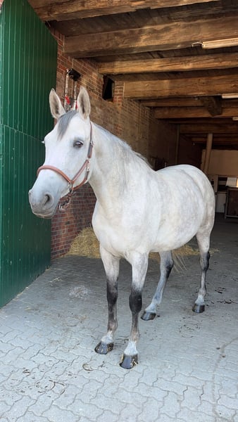 With a heavy heart, I must part with my beloved Holsteiner mare Glarina. She was born on May 4, 2014, stands approximately 16.1 hh, and is by Clarimo out of Con Air (Dam line 2004). In show jumping, she has achieved wins up to the M* level and has consistently impressed with her willingness to perform and her heart. As a four-year-old, Glarina produced her first foal, which was awarded a foal premium. This year, she foaled her second filly, who even received a champion’s premium. Unfortunately, I had to retire Glarina from sport at the age of eight due to an inflammation of the suspensory ligament origin and early-stage arthritis in her right front leg. For the past two years, she has enjoyed her time on pasture completely sound. Since mid-November, Glarina has been ridden again without any lameness. Glarina is very well-behaved in handling, uncomplicated to load, and is familiar with four and two shoes; she is currently barefoot. She is a true heart horse, bringing joy every day with her loving nature — making this decision all the more difficult. I am looking for a home where she will be valued as a valuable breeding mare and well cared for. Current X-rays of her right front suspensory ligament inflammation are available, confirming that her condition has not changed since March 2024. I would be happy to send videos of Glarina upon request. For inquiries or further questions, please contact me by phone or WhatsApp at 0171 2080112. Price: Price on request – €5,000 negotiable