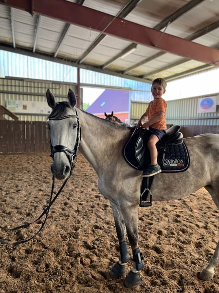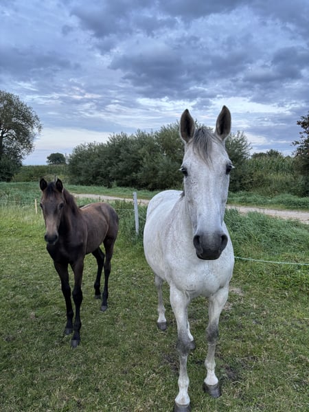 C'est à contrecoeur que je dois me séparer de ma chère jument holsteiner Glarina. Née le 4 mai 2014, elle mesure environ 1,68 m et est issue de Clarimo x Con Air (stud book 2004). En concours de saut d'obstacles, elle a obtenu des victoires jusqu'au niveau M*, toujours grâce à sa volonté de bien faire et à son cœur. Déjà à l'âge de quatre ans, Glarina a donné naissance à sa première pouliche, qui a été récompensée par une prime foal. Cette année-là, elle a également eu une seconde pouliche, qui a reçu une prime de championnat. Malheureusement, j’ai dû retirer Glarina du sport à l’âge de huit ans en raison d’une irritation de l’origine du ligament suspenseur et de l’apparition d’arthrose au antérieur droit. Depuis deux ans, elle profite d’un temps sans boiterie en paddock. Depuis la mi-novembre, Glarina est à nouveau complètement non boiteuse en selle. Glarina est très douce au manège, facile à charger, connaît le travail avec quatre et deux fers, et marche actuellement pieds nus. C’est une véritable jument de cœur, qui apporte chaque jour de la joie par sa nature affectueuse – ce qui rend cette décision encore plus difficile. Je souhaite pour elle un foyer où elle sera appréciée et choyée en tant que poulinière de valeur. Des radiographies récentes de l’arthrose au antérieur droit sont disponibles, attestant que l’état n’a pas évolué depuis mars 2024. Je peux volontiers envoyer des vidéos de Glarina sur demande. Pour toute question ou intérêt, vous pouvez me contacter par téléphone ou WhatsApp au 0171 2080112. Prix : place avant prix – 5 000 € VHB