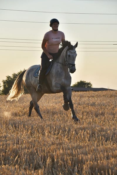 Z ciężkim sercem muszę rozstać się z moją ukochaną klacz Holsztyńską Glariną. Urodziła się 4 maja 2014 roku, ma około 168 cm wzrostu i pochodzi od rodziców Clarimo x Con Air (stam 2004). W skokach przez przeszkody osiągnęła zwycięstwa aż do klasy M*, zawsze imponując swoją chęcią do pracy i sercem do sportu. Już jako czteroletnia klacz wydała na świat swoje pierwsze źrebię, które otrzymało premię za źrebię. W tym roku urodziła drugą klacz, która zdobyła nawet premię na championacie. Niestety, w wieku ośmiu lat musiałam wycofać Glarinę ze sportu z powodu podrażnienia korzenia ścięgna podkolanowego i początku artrozy przedniej prawej nogi. Od dwóch lat cieszy się całkowicie zdrową i bezkłusą czasem na pastwisku. Od połowy listopada Glarina jest ponownie w pełni zdrowa i jeździ się na niej bez problemów. Glarina jest bardzo łagodna w obsłudze, łatwo się załadowuje do wozu, zna cztery i dwa kółka, obecnie porusza się na gołym kopycie. To prawdziwa klacz serca, która swoim ciepłym usposobieniem codziennie sprawia radość – ten krok jest dla mnie niezwykle trudny. Życzę jej domu, w którym będzie doceniona i troskliwie pielęgnowana jako cenna klacz hodowlana. Posiadam aktualne zdjęcia rentgenowskie artrozy przedniej prawej nogi, które potwierdzają, że stan nie uległ zmianie od marca 2024 roku. Chętnie wyślę na życzenie filmy z Glariną. W razie zainteresowania lub pytań proszę o kontakt telefoniczny lub przez WhatsApp pod numerem 0171 2080112. Cena: do negocjacji – 5 000 € (do uzgodnienia)